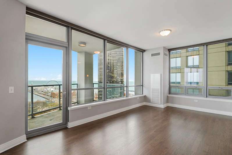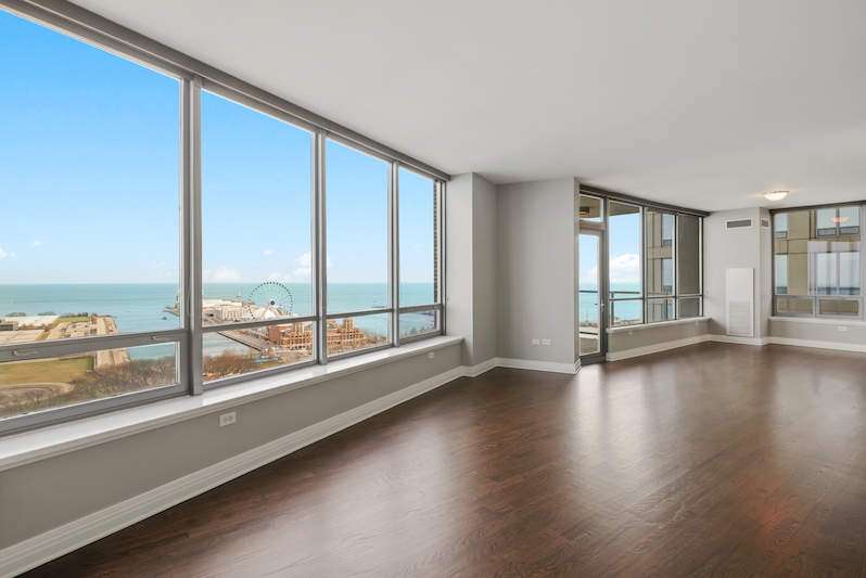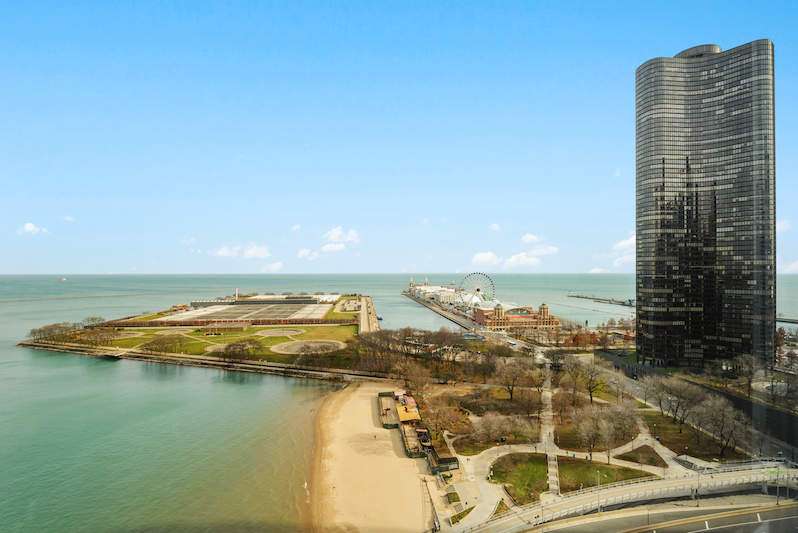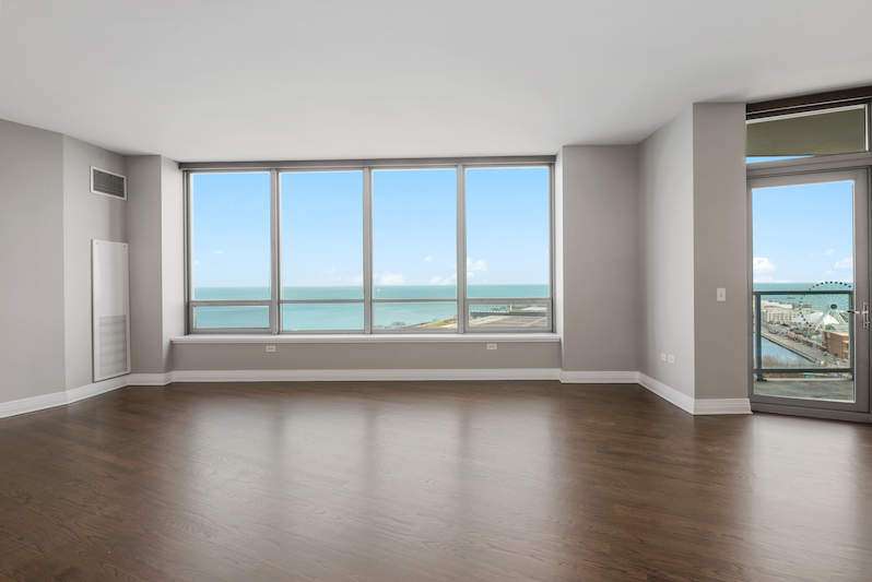 Stunning 3 bedroom on Lake Shore Drive with sweeping straight-on east views of lake, beach, park, & Navy Pier in prestigious condo building! Ideal floorplan with generous living space punctuated with the beautiful views in the front, and all three bedrooms removed for privacy along the side. An oversized upgraded kitchen with incredible cabinet & work space, granite counters, & stainless steel appliances alleviates all storage or work-space concerns. The extra wide living room extends to a large dining room - both with walls of windows -and opens out to a large balcony for private outdoor space. All 3 bedrooms are very large. The primary bedroom includes a huge organized walk in closet & large primary bath with tub and separate shower. A full hall bathroom is directly across the hall from the 2nd and 3rd bedrooms, while a powder room is hidden off the living room. Walnut-stained hardwood floors. In-unit side by side washer and dryer in a laundry room. There is plenty of closet space for storage throughout the home, with hall closets, the laundry room, and linen closet. 1 garage parking space is included and another garage parking space is available for $250 per month. No smokers. The full amenity building includes a large fitness center, roof decks, hospitality rooms, business center, 24 hour door staff, onsite dry cleaning and more. Ideal location within easy walking distance to Whole Foods, the lakefront path & beach, Navy Pier, Michigan Avenue and more.