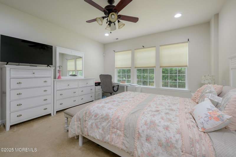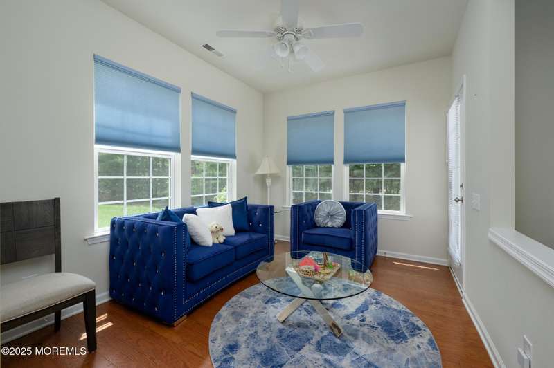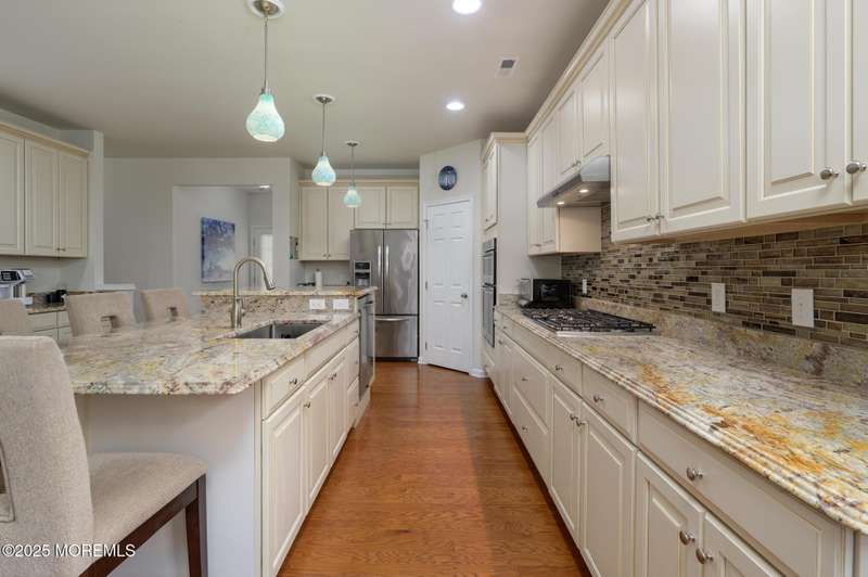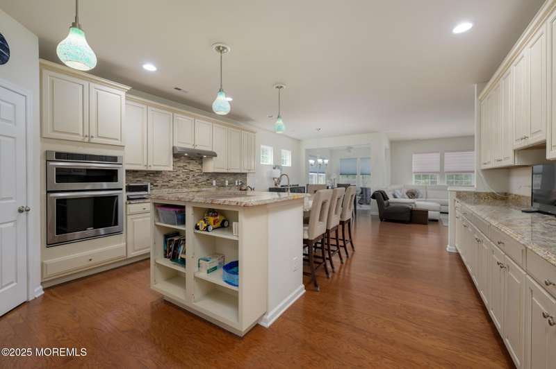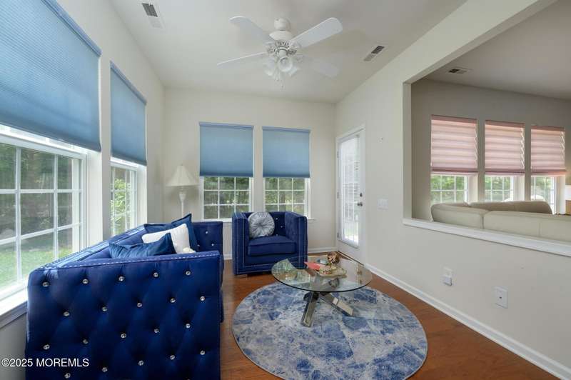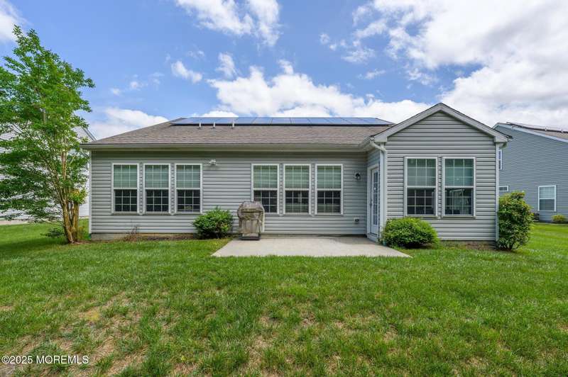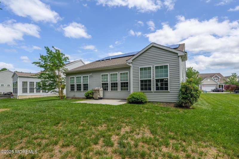 Beautiful 2014 Castle Rock has 2 bedrooms, 2 bathrooms, an office and Sunroom! It features a modern gourmet kitchen with an abundance of white cabinets, granite counters, breakfast center island with sink, countertop range, walk-in pantry, wall oven and built-in microwave. Additional cabinets and counter are also found on the back wall, never running out of cabinet space. Updates include designer window treatments. The primary bathroom has double sinks, shower stall with seat, linen closet, and walk-in closet. Relax on the front covered porch with sitting area. BONUS: Owned Solar Panels, no lease. Taxes just went down and are approx. $7300. This house is situated on a treed lot, located on a cul de sac in beautiful River Pointe, one of the most desirable 55+ communities in Ocean County beautiful River Pointe, one of the most desirable 55+ communities in Ocean County offering indoor and outdoor pools, bocce, pickleball, clubs, trips and so much more!