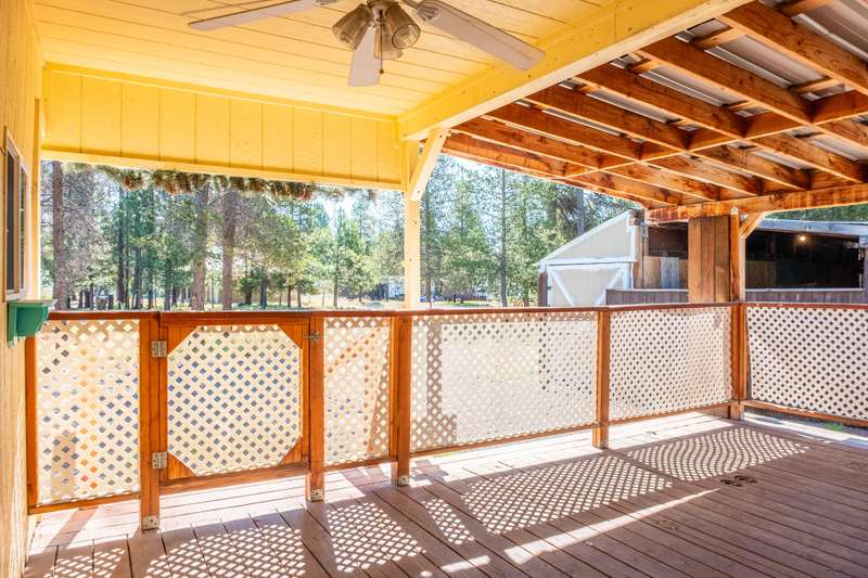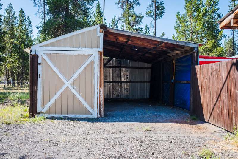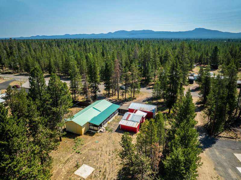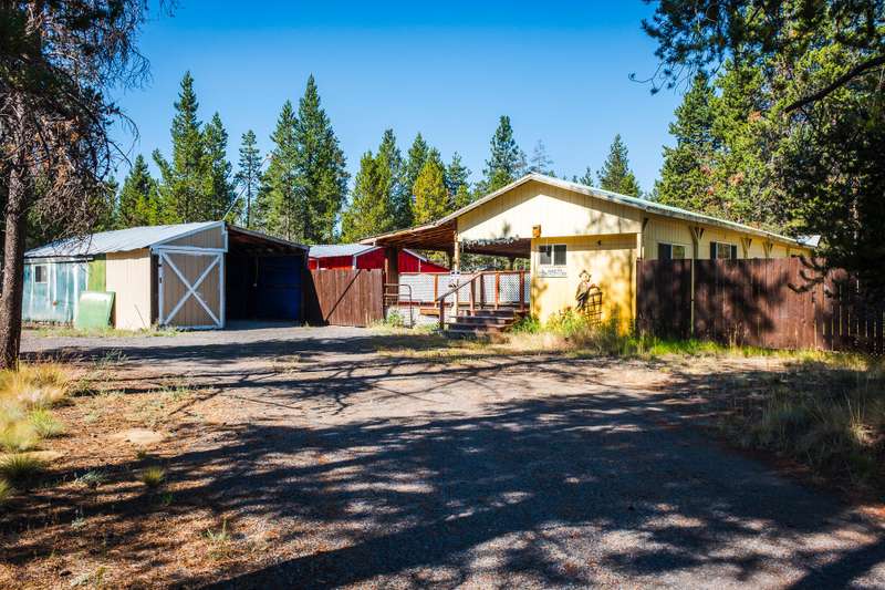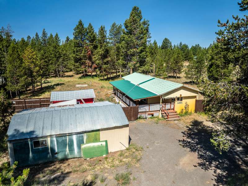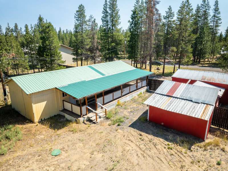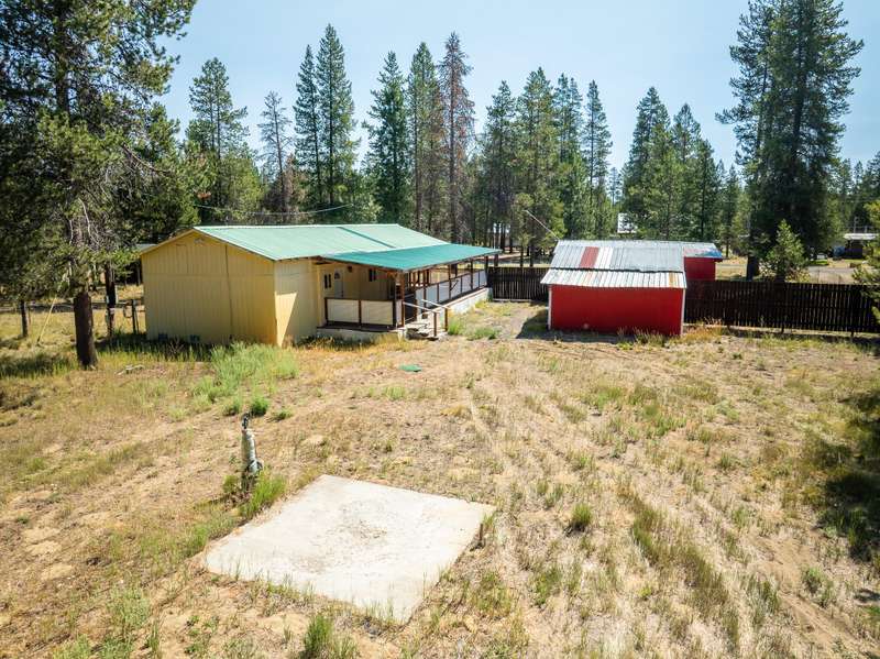 Affordable opportunity on 1.11 fully fenced acres in La Pine! This property features a mobile home surrounded by mature trees, an expansive covered porch, multiple storage sheds, a workshop, carport, and an RV hookup with dump, ideal for guests or your own RV adventures. The septic tank was replaced in 2004, and there's an immaculate well pump house for added peace of mind. The spacious lot offers room to expand or build your custom home. Enjoy privacy and versatility with close proximity to lakes, trails, and outdoor recreation. A rare find with incredible potential! Financing available!