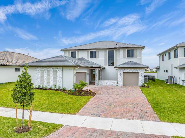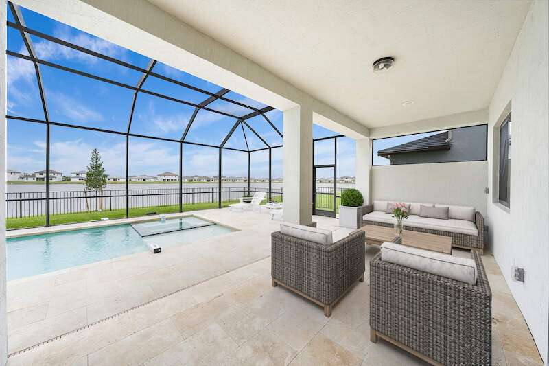 Stunning New Construction in Maple Ridge! Magnificent home built in 2023. Largest estate home in sought-after Maple Ridge community, situated on premium lot offering water views. A 2-story masterpiece boasting 4 bedrooms, 3.5 bathrooms, loft, spacious 3-car garage, and an abundance of storage. Impeccable craftsmanship w/$284,000 worth of upgrades carefully selected by owners. A separate entrance to office/guest bedroom Casita w/full bath. Relax in style w/heated, saltwater pool/spa. Extended tiled lanai is fully screened, providing a bug-free outdoor oasis. Plus,plumbing/electric wiring ready to install a dream outdoor kitchen!Impact glass windows and doors, 3-car garage, and Chef's package w/custom cabinets/appliances. Kitchen features Quartz countertops,stunning backsplash. Owner's suite master a true retreat w/2 walk-in closets, double door entry, oversized bathroom w/walk-in shower, and 2 water closets. Entertainment ready w/upgraded electrical options, including SONOS surround sound system/upgraded Wi-Fi networking. Located in Ave Maria-Naples, w/beautiful clubhouse, walking trails/bike paths, excellent schools, town shopping, dining, recreation activities, and events.
