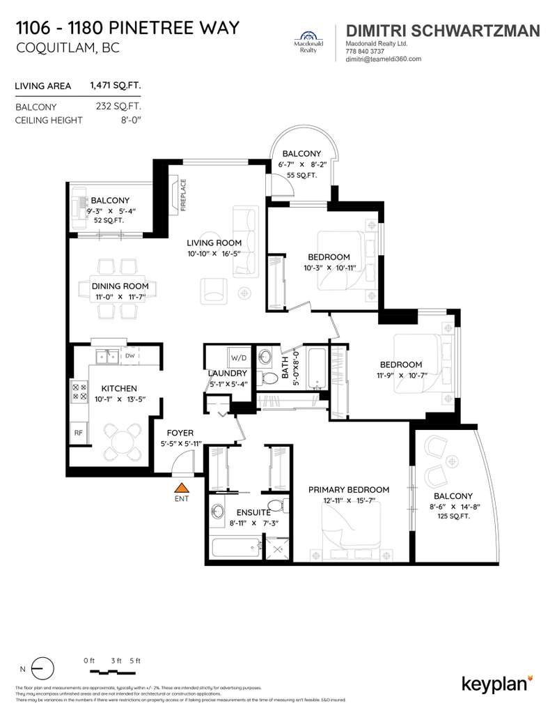 Large 3 bedroom 2 bathroom upper corner unit (1471 sf) is now available! Concrete building, bright unit with large windows right by Coquitlam Centre! New flooring, paint and appliances. This unit comes with 2 Parking stalls, 1 Locker and 3 balconies! Walking distance to skytrain, Coquitlam centre and many other amazing locations! Watch youtube video about the unit and its location and book your appt!