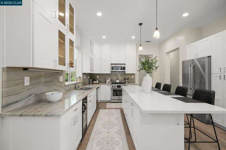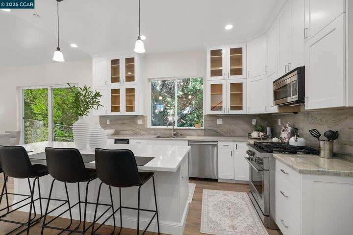 Welcome to 208 Valley View Place, a newly built 4-bedroom, 3-bath home tucked in a quiet El Sobrante cul-de-sac. Offering 2,573 sq ft of living space on a 9,583 sq ft lot, this residence blends modern comfort with hillside tranquility. The open floor plan features soaring ceilings, abundant natural light, and a seamless flow between the great room, dining area, and chef’s kitchen. A large island and premium appliances make the kitchen the heart of the home, ideal for entertaining and everyday living. The upstairs primary suite offers a spa-inspired bath and walk-in closet, while additional bedrooms provide flexibility for family, guests, or a home office. Enjoy outdoor living with a private patio and landscaped yard, perfect for gatherings or quiet mornings. Conveniently located near schools, parks, shopping, and commuter routes, this home delivers the best of contemporary design in one of El Sobrante’s most desirable neighborhoods.
