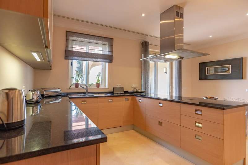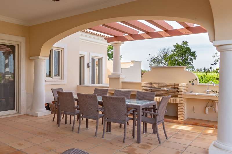 Luxury four bedroomvilla for sale in Vila Real de Santo Antonio, Algarve. This villa has four bedrooms, each with an en suite bathroom and a dressing room, a living room, a fully equipped kitchen, a cellar, and a garage. It is already decorated and meticulously maintained. With expansive outdoor living spaces, a swimming pool, and a barbecue, this villa offers breathtaking views of the sea and golf course. Excellent location, encircled by nature, 10 minutes from the Spanish border and 45 minutes from Faro International Airport by car. CHARACTERISTICS: Plot Area: 1 207 m2 | 12 992 sq ft Area: 504 m2 | 5 425 sq ft Building Area: 504 m2 | 5 425 sq ft Bedrooms: 4 Bathrooms: 5 Energy efficiency: B- FEATURES: Fully furnished and equipped Four suites Game room in the basement Laundry room Barbecue Swimming pool Alarm system Solar panels Air conditioning