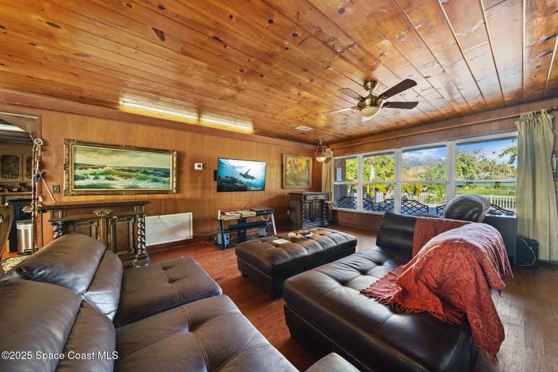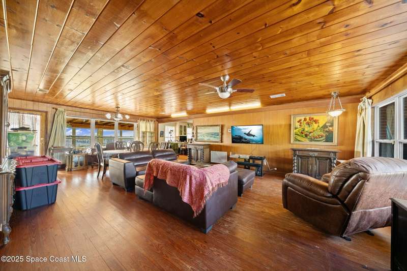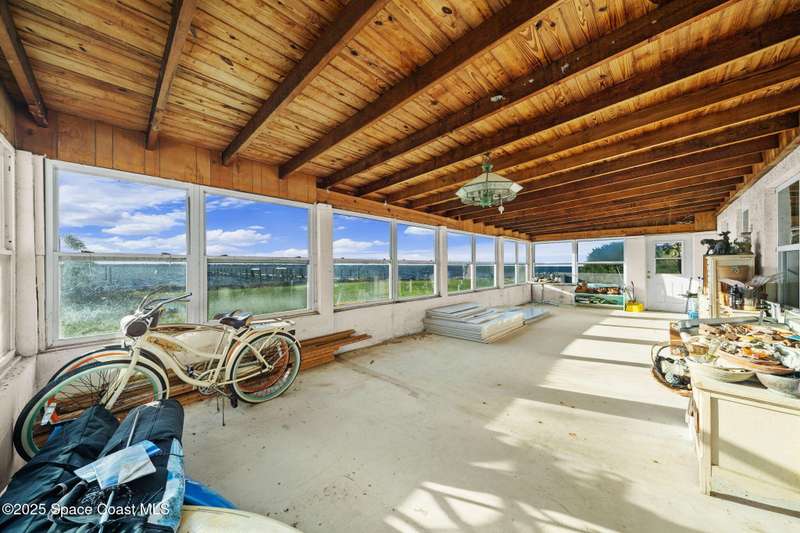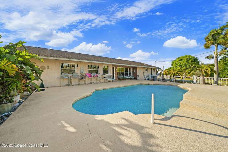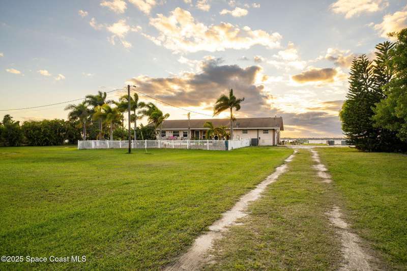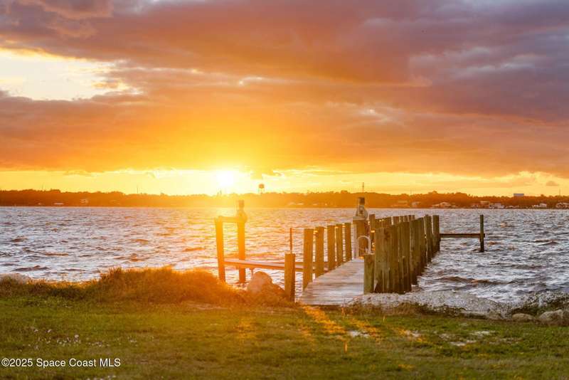 Experience breathtaking sunsets and vibrant waterfront living from this rare 4+ acre estate on coveted North Merritt Island. With 350 feet of direct Indian River frontage and a private dock, this property offers a unique connection to nature, private and secluded, yet with a front-row seat to the excitement of the booming space industry. Set at the end of a quiet street surrounded by lush tropical landscaping, this serene haven offers unmatched privacy and endless possibilities. Cruise from your backyard to nearby islands, dockside restaurants, or through the Canaveral Locks for a day of offshore fishing and adventure. The existing home is full of character and offered as-is, perfect for a peaceful retreat or as the ideal foundation to build your dream waterfront estate. With a gorgeous pool area and ample space to design a custom residence, imagine expansive river views, resort-style outdoor living, and sunsets that paint the sky in vivid color. Located just minutes from Kennedy Space Center, Port Canaveral, pristine beaches, and major highways, this property blends luxury, seclusion, and convenience. It is a rare opportunity for those who dream of an extraordinary riverfront lifestyle where every day begins with beauty and ends with a sunset over the Indian River.