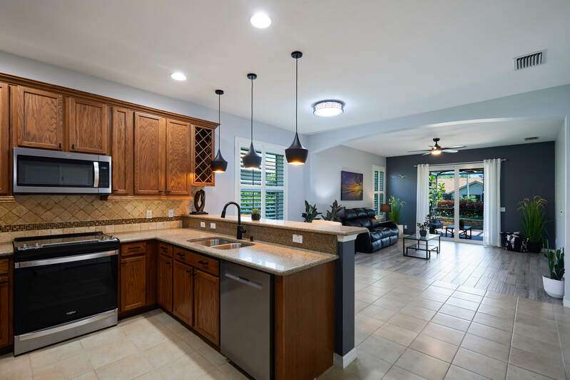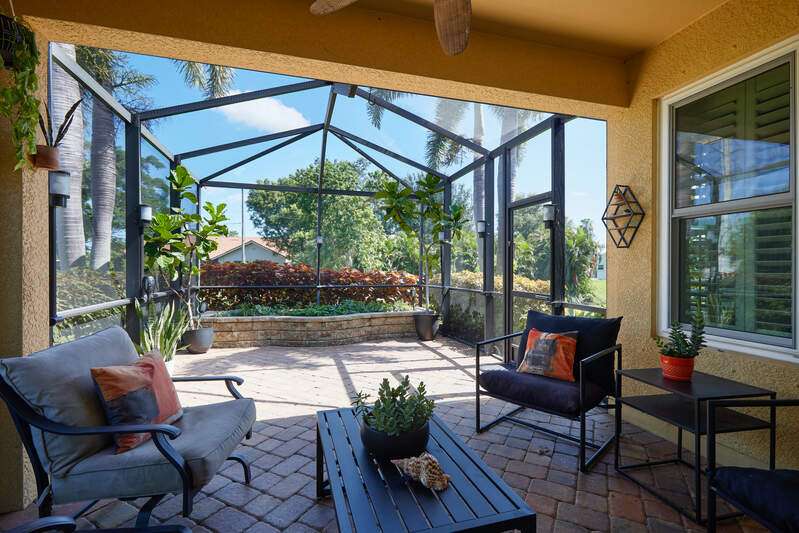 Welcome to 8698 Colony Trace Drive, a beautifully maintained single-story Beazer-built Harrison model home, ideally located off the desirable Winkler Road Extension in Fort Myers. Built in 2008 and set on an oversized lot, this 3-bedroom, 2-bathroom residence is move-in ready and full of upgrades that reflect years of thoughtful ownership and care. From its freshly landscaped yard with a custom irrigation system to its updated interior finishes, every inch of this home has been designed with comfort, quality, and easy living in mind. As you step through the front door, you're greeted by a spacious, light-filled layout complemented by hurricane-impact insulated windows and doors, plantation shutters on every window. Freshly painted rooms welcoming environment that immediately feels like home. The open-concept living and dining areas flow effortlessly into the kitchen, which boasts granite and quartz countertops, tumbled marble backsplash, crown molding with undercabinet lighting, stainless steel appliances, and even accent kickplate lighting for a soft evening ambiance. The large primary suite is a peaceful retreat, offering a custom walk-in closet with wire shelving, a beautifully remodeled bathroom with tile-surround shower, dual shower niches, travertine sill, and upgraded fixtures, all completed by WDM Construction with detailed documentation available. This private wing also allows space for a sitting area or reading nook, making it an ideal haven for relaxation. Step outside to the extended screened lanai featuring custom lighting and a raised flower bed, perfect for morning coffee or unwinding under the stars. The backyard is adorned with a mature lemon and lime tree, offering seasonal citrus and a sweet reminder of Southwest Florida living. Additional landscaping includes tropical touches and plenty of room for a garden or play area. Additional upgrades include ceiling fans in all bedrooms and living spaces, motion detector lighting on three sides of the home, soffit outlets with a timer for holiday lighting, outdoor water spigots at all four corners, and a garage outfitted with overhead storage, a custom workbench. The home is wired for a whole-house generator (with a transfer switch in the garage), and the A/C has been serviced annually for optimal performance. The HOA is just $97.00/month and maintains the quiet, attractive appeal of this tucked-away community. Conveniently located near Fort Myers Beach, HealthPark Hospital, shopping, dining, and more, yet nestled in a peaceful residential enclave, this home delivers the best of both worlds. Come experience the charm, functionality, and Florida lifestyle that 8698 Colony Trace Drive has to offer. This one won't last long don't miss your chance to make it yours.