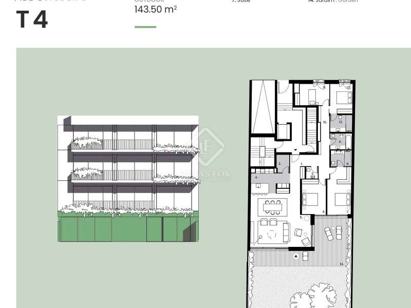 Fantastic 4 bedroom apartment, with terrace, located in a new luxury condominium located in Foz do Douro, on Rua Marechal Saldanha and which introduces a concept of comfort, tranquility and peace. The development comprises 2 buildings, and this apartment is located on floor 0 of the building, facing east. It has a very generous gross area, 348.10 m2 in total, of which 204.60 m2 correspond to the interior gross area and 143.60 m2 to the exterior area. All of these areas were designed and designed to provide greater comfort, peace and tranquility to their residents, every day of the year. In terms of finishes, nothing was left to chance and everything was designed to offer the greatest comfort, quality and functionality to residents.