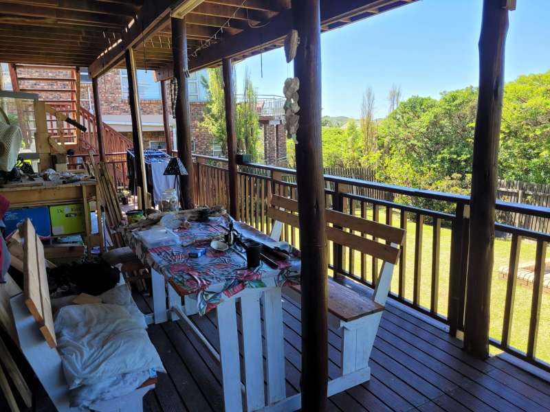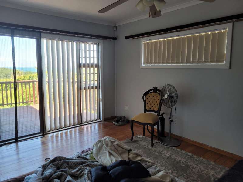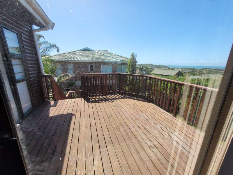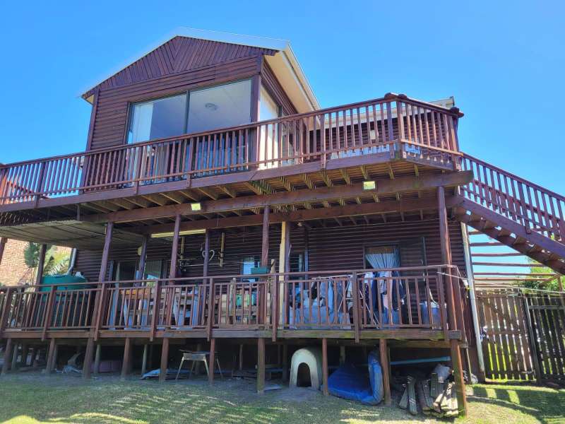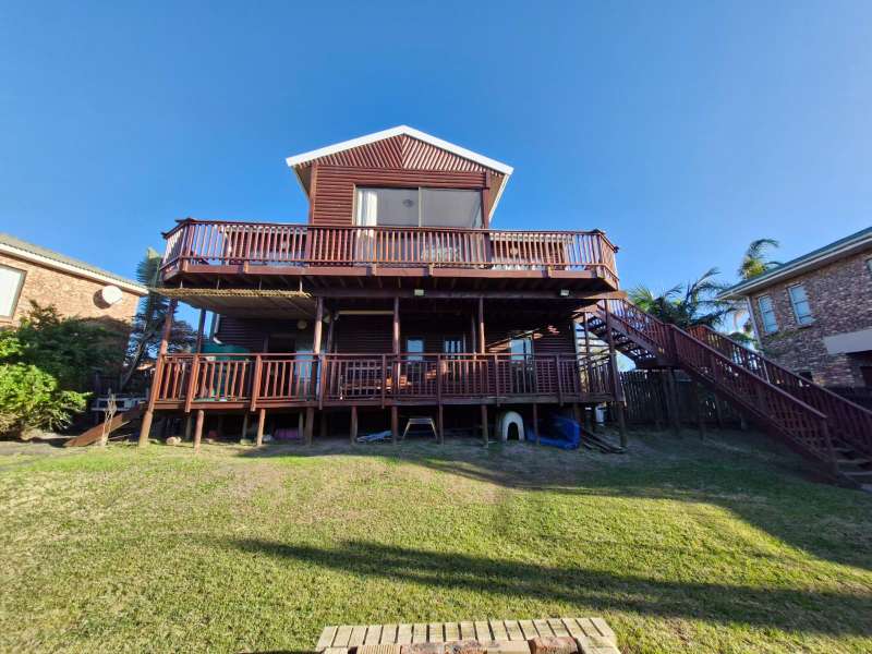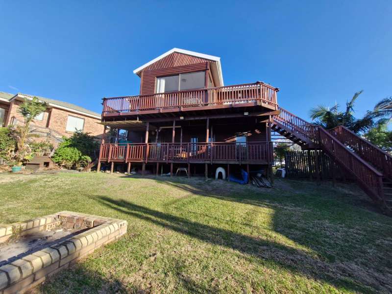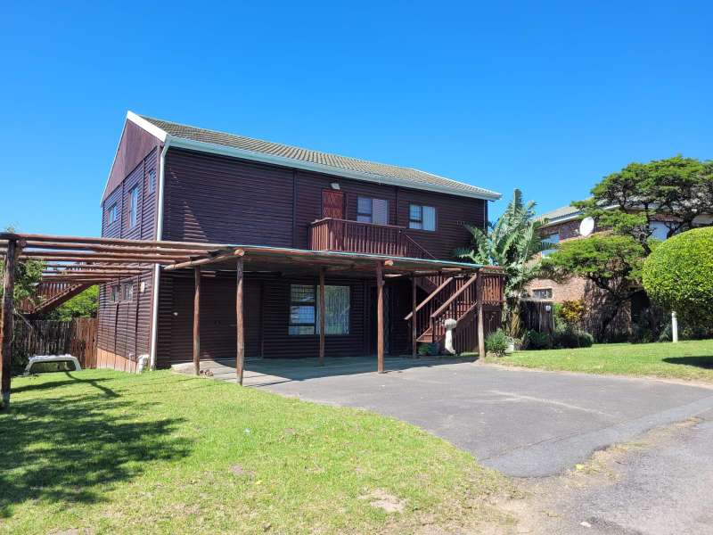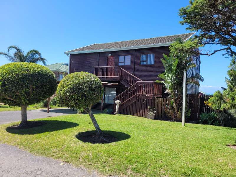 Trade the city bustle for the idyllic seaside lifestyle. Take a look at this beautiful double story wooden home perched on a hilltop with amazing sea views and greenbelt in front. The property offers a split level home which could be used as one for extended family or rental. Upstairs offers a spacious open plan lounge, fitted kitchen with gas hob and built in oven dining area, entertainment area with sliding doors opening out to a wooden deck with amazing ocean views. Two comfortable size bedrooms, both with main-en-suite bathrooms. The main bedroom has a balcony facing the ocean. Downstairs has a open plan lounge, kitchen with ample built in cupboards, gas stove, place for all appliances. Two bedrooms, sharing a bathroom: shower, wash basin and toilet place for washing machine connection. Study, and a single garage with could be converted into another bedroom. Large wooden deck enclosed yard for children to play. Be part of this country estate walking distance to the beach. Cove Rock is located close to town and the IDZ. Ideal getaway holiday home or an investment for rental. The estate has plenty to offer such as communal swimming pools, tennis court with flood lights, golf with clubhouse and braai facilities. Play area for the children to enjoy. Excellent 24hr security system, biometric access system. Do contact me for an exclusive viewing.