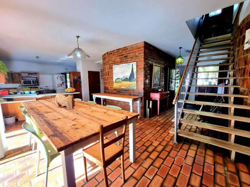 4 Bedroom House For Sale in a sought-after neighborhood of Modimolle. This unique double-story property is situated on a sprawling 1400m?? stand, offering space, character, and style. Enter through the welcoming entrance hall, where you?ÇÖll find a spacious study on your right and direct access to the double garage on your left. The heart of the home is the large open-plan living and dining area with sliding doors that open to an expansive backyard featuring a sparkling swimming pool, braai area, and a pizza oven ?Çö perfect for entertaining family and friends. The established garden is beautifully laid out and well maintained. The dining area flows into the kitchen, which is fitted with both electric and gas hobs, an electric oven, a separate scullery, and a laundry area in the courtyard. Downstairs you?ÇÖll also find a guest bathroom with a shower, basin, and toilet for convenience. Upstairs offers four bedrooms filled with natural light, all with built-in cupboards and high ceilings. The main bedroom is spacious with its own private balcony overlooking the pool and garden, plus an en-suite bathroom featuring a bath, shower, double vanity, and toilet. Next to the main bedroom is a smaller room that can be used as a nursery or private study. The two additional bedrooms are also generously sized and open onto a large balcony through sliding doors. These bedrooms share a full bathroom and a separate toilet. Practical extras include plenty of storage space, an equipment storeroom, a double garage with one high door suitable for a caravan, a double covered carport, and a backup water tank with a pressure pump already installed. This house turns heads ?Çö a real standout and truly one of a kind. Don?ÇÖt miss out on this opportunity. Call me today for more information or to arrange a viewing.