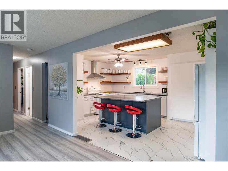Welcome to 955 Hickory Rd, your next place to call home! This beautifully updated four bedroom plus den offers the perfect blend of comfort style and functionality all nestled in the heart of a desirable and centrally located South Rutland neighbourhood. Step inside to discover a bright, open concept main floor featuring brand new laminate flooring, fresh paint and a renovated kitchen that is sure to impress! The kitchen offers ample counter space, a large island with extra storage and seating, the island even includes an automatic sweeper connected to the central vacuum system for added convenience. The main floor also includes a spacious primary bedroom with two piece en suite, two additional bedrooms and the main floor bathroom. Downstairs you’ll find more space for the whole family, a large family room perfect for movie nights and games, the fourth bedroom and den, great for guests or a home office, and a three-piece bathroom and cold room for extra storage. Enjoy year-round comfort with a newer furnace, central air conditioning, hot water tank and roof. Outside the home continues to impress with the large fully fenced yard that is perfect for gardening, kids or pets, has 3 storage sheds and a covered patio, there is also ample parking, including RV parking with a 30 amp hook up. All this located close to schools, shopping, transit and beautiful Mission Creek trails. Whether you’re upsizing downsizing or just looking for a perfect family home 955 Hickory has it all! (id:7434)