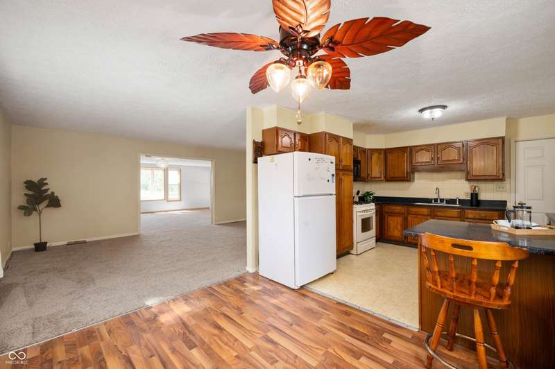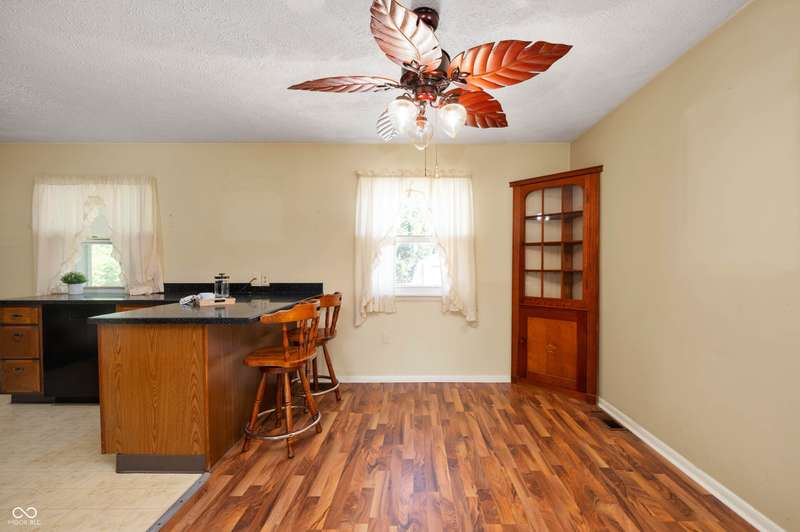 Welcome to this charming 1,632 sq. ft. ranch home set on just under 2 acres, offering both space and convenience just a half-mile from Moorland and half-mile south of State Road 36. This lovely property features 3 bedrooms and 11/2 bathrooms, along with multiple living spaces designed for flexibility. The main living room is generously sized, while the additional family room can easily serve as a dining room or entertainment space. The eat-in kitchen provides a comfortable spot for daily meals, and the screened-in sunroom is the perfect retreat for relaxing evenings. A partial unfinished basement offers extra storage or potential future living space. Car enthusiasts and hobbyists will love the garage setup, which includes a 2-car attached garage plus a 3-car detached garage for added parking, storage, or workshop needs. With its peaceful setting, versatile floor plan, and ample outdoor space, this property is ready to welcome its next owners.