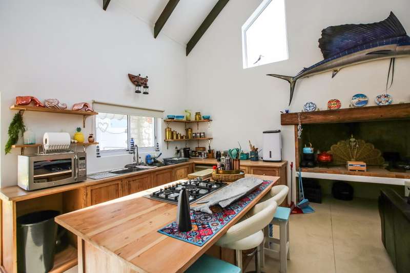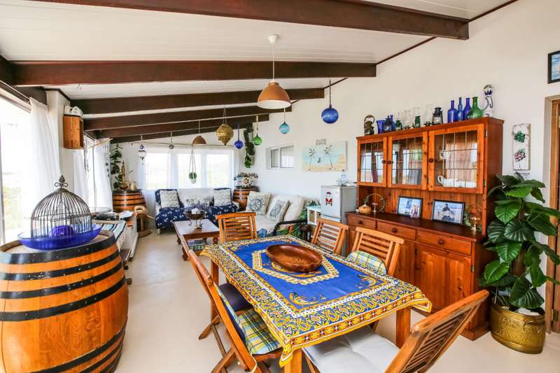 Escape to the charming coastal town of Struisbaai and discover your dream home! This unique and character-filled house, with its warm undertones and rustic appeal, is calling out to someone who appreciates a home with soul. Step inside and feel the welcoming embrace of the open-plan layout. The kitchen features a charming, rustic design, and the cozy fireplace is perfect for chilly evenings. The double-volume ceilings create an airy and spacious feel, but the best place to be might just be the expansive dining and sunroom. Here, you can soak in the incredible north-facing sea views visible right from your windows. Just slide open the doors to let the fresh ocean breeze fill the room! This inviting home boasts three bedrooms and three artfully designed bathrooms, providing comfort and style. The large upstairs loft is a fantastic bonus, currently set up with four single beds?Çöideal for hosting family and friends during holidays. Beyond the main living areas, the property offers a single garage and a sheltered undercover patio at the back, perfect for enjoying a braai even on those windy South Easter days. This isn't just a house; it's an opportunity to embrace the relaxed, coastal lifestyle that Struisbaai offers. Don't let this chance pass you by?Çöcontact us today to arrange a viewing and start your next chapter in this beautiful seaside town.