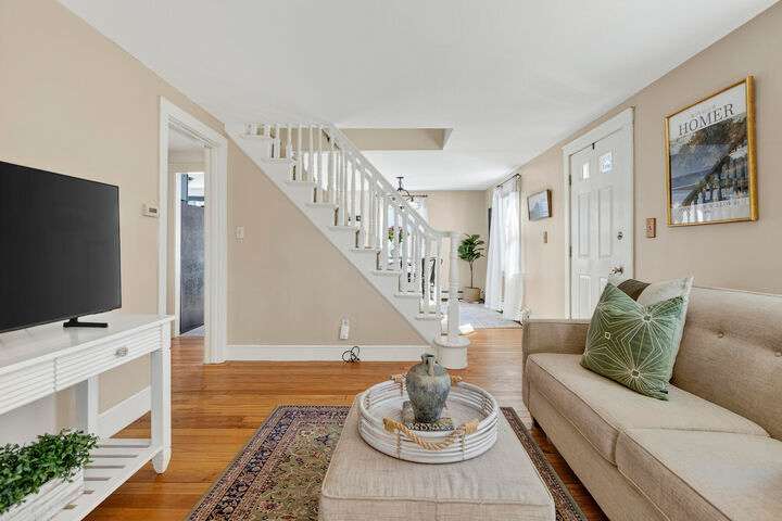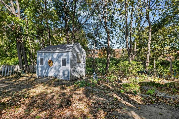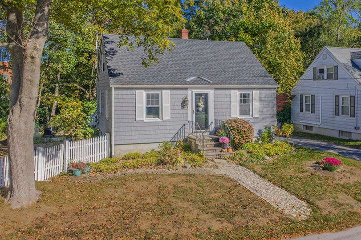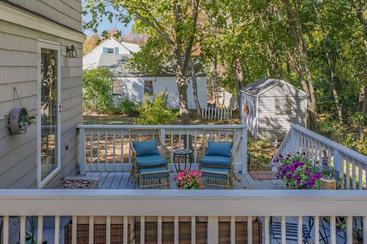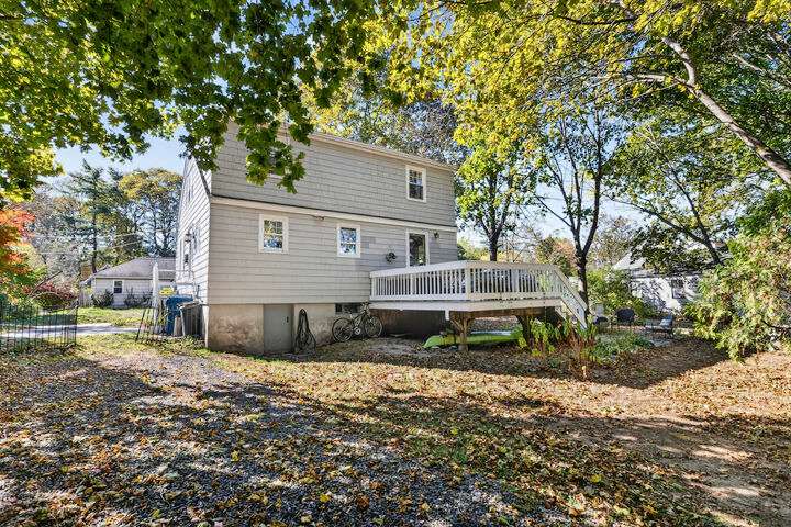 Sweet cape cod home located in a quiet Ocean Ave/Back Cove Neighborhood. It's uniquely sited on a double lot, providing extra privacy and room to play and garden. The first floor layout is relatively open with wood floors and a half bath. A built-in peninsula/breakfast bar divides the kitchen from the dining and add more storage. The office/bedroom has a glass door that opens to a great sized deck for relaxing outdoor living as well as fun entertaining. A pretty open stairway leads to 2 large bedrooms and a full bathroom on the 2nd floor. The large yard has a patio, shade gardens & storage shed to one side. Some basic pet fencing is in place for your furry friends. A stone parking area with light post is on the other side for your RV, boat or extra parking. Sun drenches the front gardens and walkway. Imagine adding raised beds for veggies, herbs and maybe more flowers. Come see if this could be your next home sweet home.