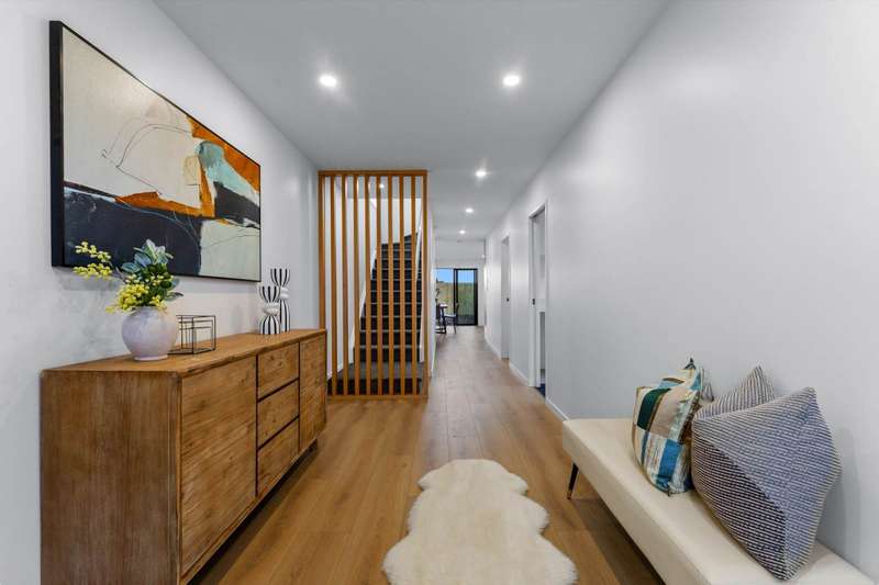 Gracefully designed and generously sized, this beautifully appointed six-bedroom home offers approx. 212sqm of internal living space on a freehold 300sqm site — delivering both elegance and everyday comfort in one of Karaka’s most desirable enclaves. From the soaring foyer and custom timber screen, to the dual kitchen layout and expansive indoor-outdoor flow, every detail has been crafted for modern family living. The ground floor hosts a full guest suite, open-plan living, and seamless entertaining zones. Upstairs, five additional bedrooms, three bathrooms (including two ensuites), and ample storage complete the picture. Property Highlights: • Approx. 212sqm floor area on 300sqm freehold land • 6 bedrooms, including a private guest suite on the ground floor • 4.5 bathrooms, with three stylish ensuites • Designer main kitchen with Smeg appliances + separate gas kitchen (Robam) • Central air-conditioning (Mitsubishi Heavy Industries) • Open-plan dining & living with great natural light and flow • Custom solid timber screen feature in foyer • Double internal-access garage with ample storage • Private, easy-care backyard perfect for alfresco dining or kids’ play Location Features: • Zoned for popular Hingaia Peninsula School • Near ACG Strathallan and top private schools • Easy motorway access to Auckland CBD & Airport • Walk to Karaka Lakes, playgrounds, and scenic reserves This is a rare opportunity to secure a well-appointed, low-maintenance home in an established, family-friendly community. Contact us today to arrange a private viewing. Disclosure: Photos taken at 49 Derbyshire Lane, Karaka.