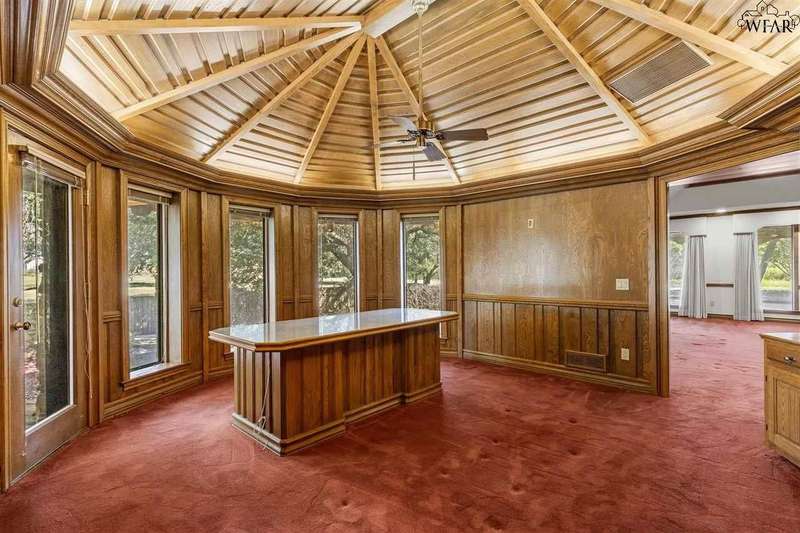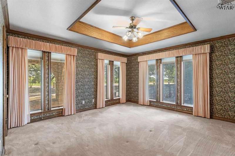 Western elegance meets custom craftsmanship in this 5,400+ SF executive home in Megargel—2 hrs to FtWorth, 1.5 to Abilene, under 1 hr to WFalls. Stonework exterior to interior w grand arched porch and entryhall Entertain with built-in smokers, grills & fry station. Features include a garden suite, dome-ceiling office with ext entry, vaulted dining, and formal living room. All 4 beds have en-suites. Bonus: 3/2 home, barn, stalls & additional 7.57 acres negotiable. Generator. Hunters Haven—true Texas charm!