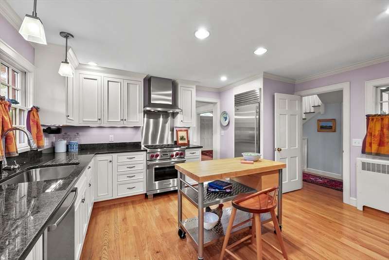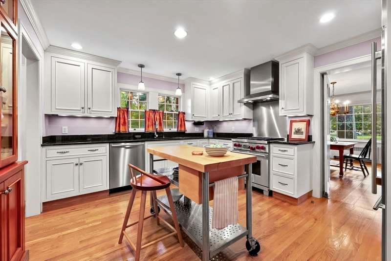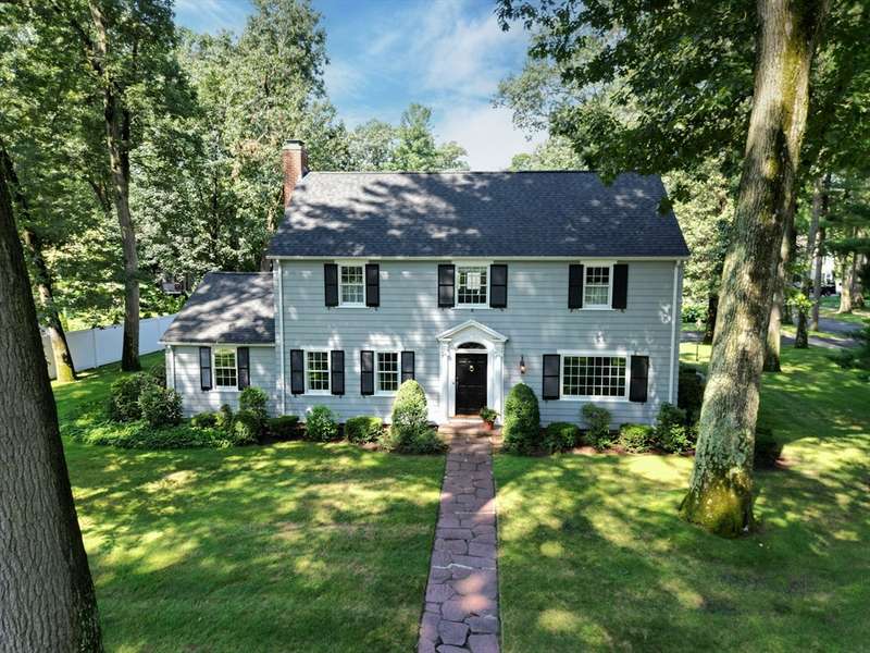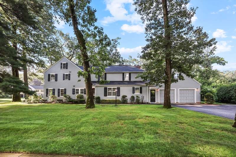 Classic colonial w/superb curb appeal in the coveted Kibbe Tract has exceptional flow, pristine condition & outstanding functionality. Home welcomes w/its gracious foyer featuring wide openings to living & dining rooms plus sightlines to connected living spaces & backyard. Living room offers fireplace, custom built-ins & seamless access to both home office & cozy den- perfect places for working remotely. Renovated kitchen impresses w/timeless design of inset custom cabinetry & high-end appliances, flowing into stunning family room adorned w/warm cherry wood & corner fireplace. Mudroom w/custom cubbies, large closet & access to attached garage adds convenience. Upstairs, a generous primary suite features full bath & walk-in closet, accompanied by two additional bedrooms, one being ensuite. Lower-level recreation room is ideal for play, while the private backyard w/hedges, lush lawn & patio offers a serene retreat. Newer boiler, h/w heater, roof & exterior paint provide peace of mind.
