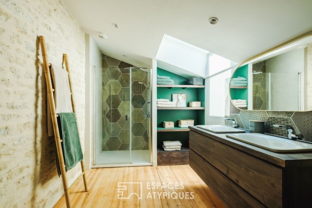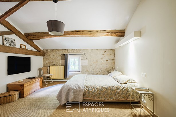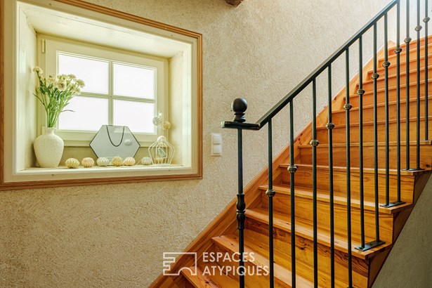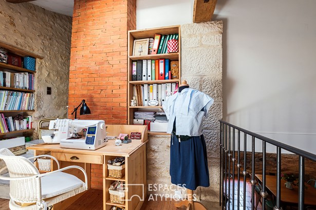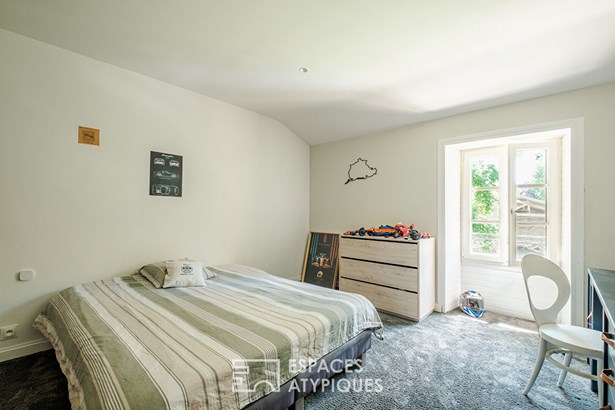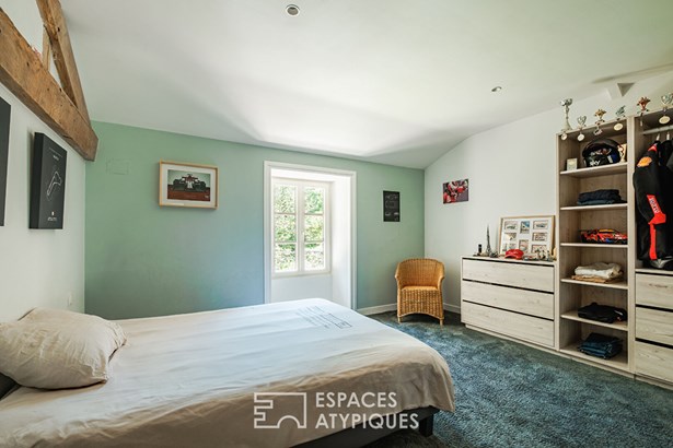 The master bedroom has a dressing room and can be accessed by a clever set of stairs which leads to a sewing workshop on the mezzanine. In the garden, calm and plenitude are required. A hammock offers a breathtaking view of the property while enjoying the freshness thanks to a small wood.