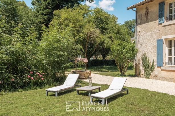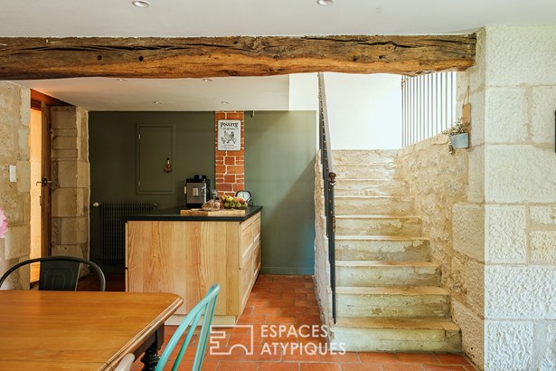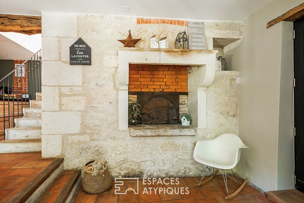 Located 18 km from Niort, in a charming village with grocery store and schools, this typical property of the region has managed to combine, with so much contrast and marriage, the elegance of the old with modern materials.