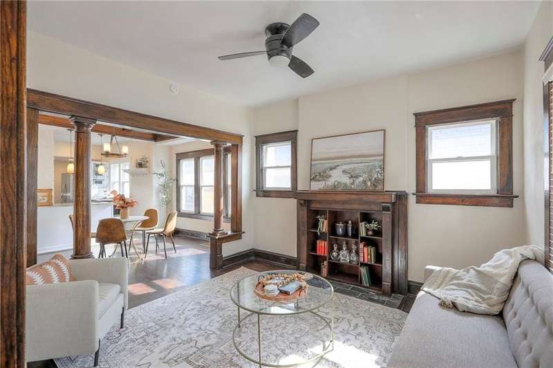 Wonderful woodwork, exquisite updates, and the most charming place you could call home all within the heart of the cityand under $200,000! Enjoy morning coffee on your front porch, or enter in to soaring ceilings, gorgeous wood beams, andmodern updates that preserve historic charm while making your new home totally turnkey. Beautifully updated kitchenwith exposed brick, SS appliances and granite countertops. Tons of natural light, and gorgeous hardwood floors and mainfloor laundry. 2 bedrooms on main level, with an expansive primary bedroom upstairs. Private fenced yard andimpeccably maintained! Move right in and enjoy! New roof, new HVAC, and newer appliances that all stay!