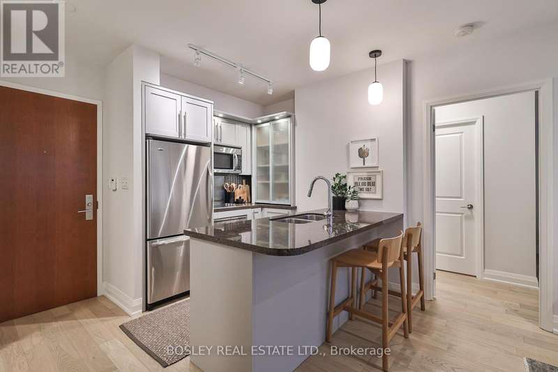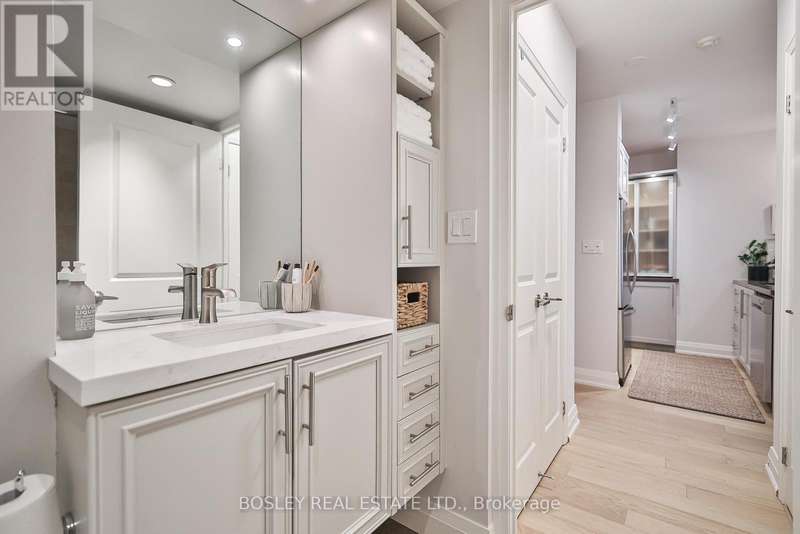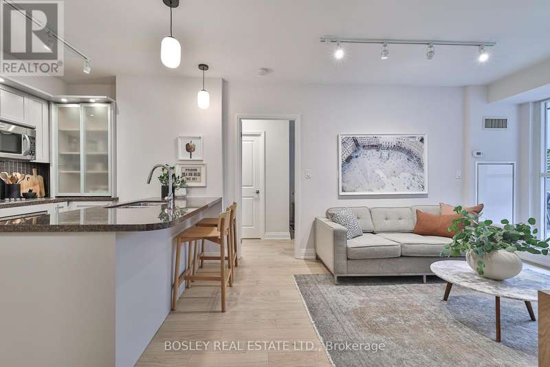 Welcome to The Clairmont where boutique sophistication meets urban living with ease at Yonge & St. Clair. This 2-bedroom, 2-bath suite offers 810 sq. ft. of thoughtfully designed interior space, paired with a remarkable 260 sq. ft. private terrace - perfect for morning coffee or evenings under the stars. With a gas hookup for grilling (or a heat lamp to extend the seasons) and a water bib for the urban gardener, the terrace is a true extension of your living space. Inside, the gourmet-inspired kitchen features full-sized upgraded appliances, ample storage, and a breakfast bar ideal for casual meals or sociable cooking. The practical entry foyer includes a coat closet and a separate laundry area for added convenience. Engineered white oak flooring and refined neutral finishes lend timeless style throughout. The primary suite offers a spacious walk-in closet and a spa-inspired ensuite with a tranquil soaker tub, natural stone finishes, and custom millwork for elegant, functional storage. The second bedroom nicely separated in the split layout includes its own walk-in closet and operable window, offering flexibility for guests, a home office, den, or family. Just steps from the suite, the buildings fitness studio feels like your own personal gym. Complete with garage parking and owned storage locker. A rare blend of comfort, style, and convenience in one of midtowns most desirable boutique residences. (id:7434)