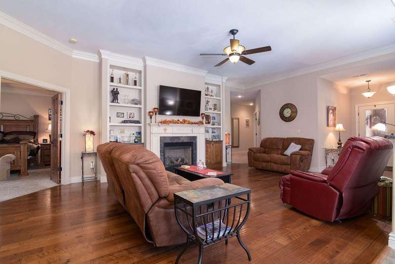 Let the Good Life begin at 25 Mountain View Court in StoneBridge Village and LedgeStone Golf and Country Club. Price adjusted by motivated seller. You will enjoy the natural beauty and architectural design of the homes upon entering the Village. The home itself has been well maintained with Roof Replacement and HVAC Serviced and offering a full list of Upgrades and Features. First, it is Single Level Living with over 2200 sf, featuring high ceilings accented with crown molding and hardwood flooring thur-out the open living and gathering area. The well appointed kitchen with granite is open to dining and living room. Perfect for Entertaining. There are 2 sets of double doors leading to the Sunroom and Deck on the east side to enjoy morning sunrises or the evening lights of Branson. The Master Suite has two private bath areas: one with large walkin shower, vanity and toilet, the other with jetted tub/shower, 2 vanities and toilet. Extra 2 bedrooms are on other side of floorplan for privacy with hall bath. and laundry. Bonus Room off the Entry that could be Office, Hobby Room or Dining Room. 3 car garage with NO Steps and measuring 22 by 35 ft. The owner is responsible for the yard maintenance with sprinkler system and mature trees. StoneBridge Village offers the best in lifestyle and activities with a convenient location to all services, Branson attractions and Table Rock Lake within 15 minutes. The Monthly POA dues are only $173 and includes the full list of activities: Tennis, Pickleball, Swimming in 3 Pools, Fitness Center, Gated Entrances, Road Maintenance and monthly activities from cards, book club, socials and more. LedgeStone Golf Course offered discounted Pay Par Play or an Affordable Annual Unlimited Golf. Go to www.sbvpoa.org for all governing documents, newsletter, ACC guidelines, etc. Some furniture will be available outside of the Contract. Great Place to start Your Day before heading out to Golf, Fish or whatever you'd like to do