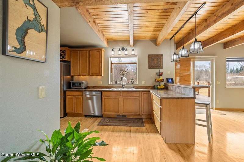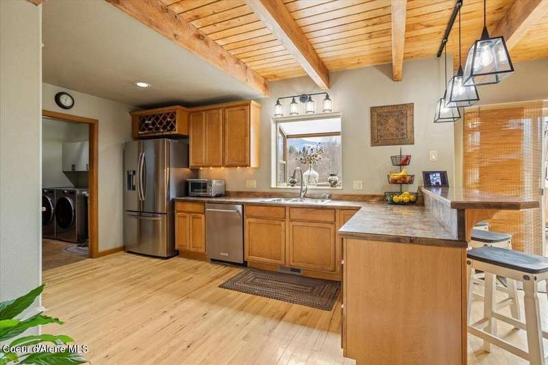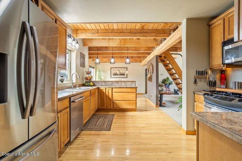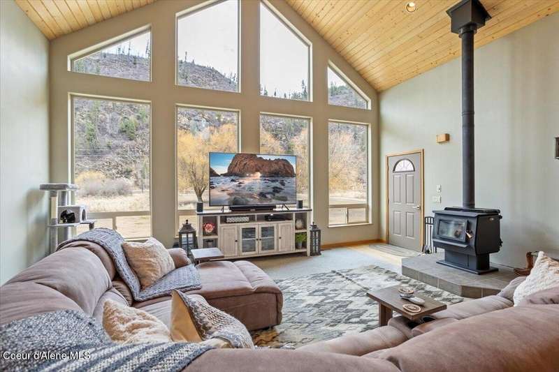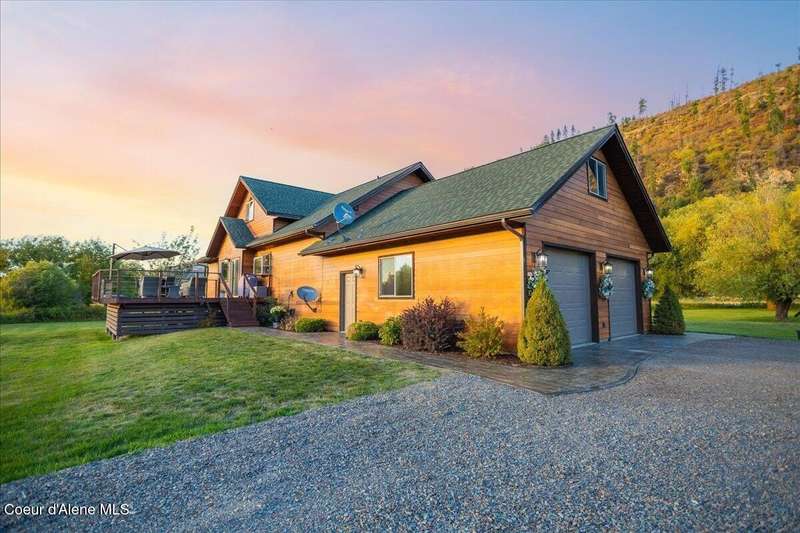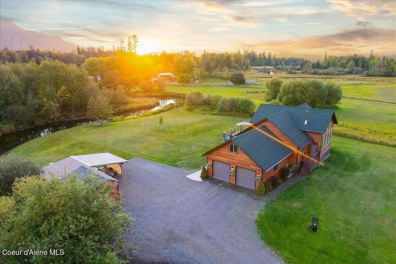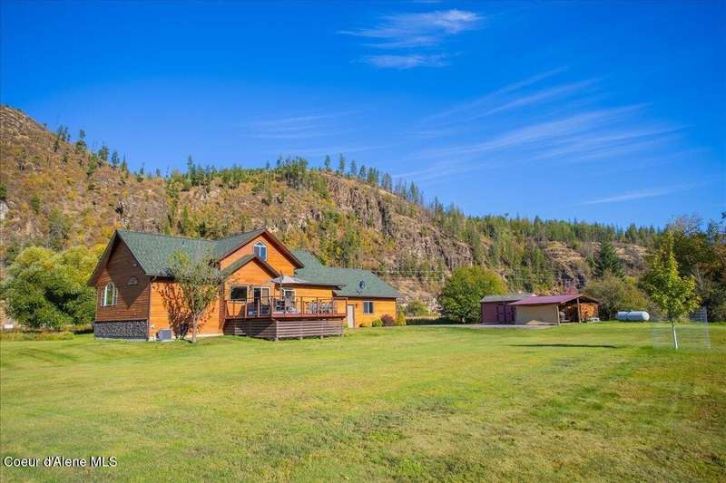 Escape to this 2,067-square-foot haven perched on 4.93 acres of beautifully landscaped grounds in Clark Fork, Idaho. With 3 bedrooms, 2 bathrooms, and year-round creek frontage flowing into the navigable waters of Lake Pend Oreille, this property offers a rare blend of privacy and adventure. Launch a kayak from your backyard, or unwind on the south-facing deck, soaking in panoramic views of rolling hills and distant peaks. Step inside to a warm, inviting interior featuring tongue-and-groove ceilings and a cozy wood fireplace. The spacious master suite boasts a walk-in closet and attached bathroom, while the open living area flows effortlessly to the deck—perfect for entertaining under the sun. Modern upgrades include an on-demand Generac generator, updated mechanical systems, a new dishwasher, and a refrigerator. A 2-car attached garage includes an unfinished 24x12 room above, brimming with potential. There is a detached, insulated workshop and carport blending functionality with convenience. Whether you're drawn to the creek's gentle murmur or the vast outdoor space, this retreat is a North Idaho gem.