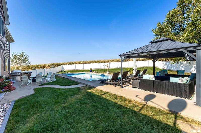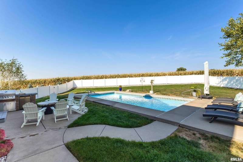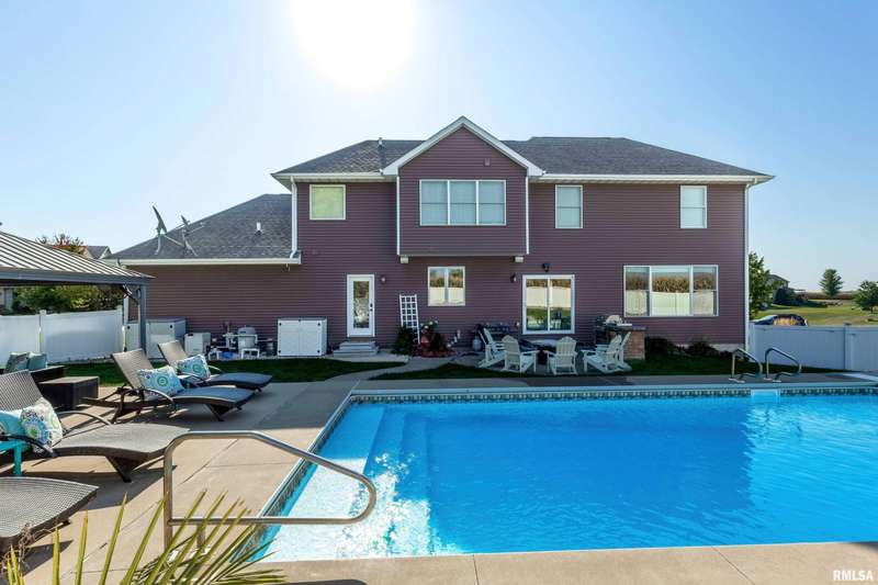6644 Summerfield Drive, Bettendorf Stunning 2-story in the sought-after Huntington Meadows neighborhood near Forest Grove School & Park. The open-concept main level showcases a great room and kitchen with island, oversize walk-in pantry, and hardwood floors. All appliances stay. A den/office and convenient back hall with built-in bench and bath. Upstairs youll find 4 bedrooms and 2 full baths, including a spacious primary suite with walk-in shower, jetted tub, and walk-in closet with custom built-ins connected to the laundry room with utility sink. The finished lower level is designed for entertaining with daylight windows, bath, wet bar with beverage fridge, built-in salt water fish aquarium, and theater room with projection and surround sound and includes 7 theater loungers. Step outside to your private backyard oasis featuring a heated in-ground pool with auto cover, personal cabana, sun deck, patio, built-in grilling station with beverage fridge, lush landscaping, all surrounded by a vinyl privacy fence. Additional highlights include a 3-car garage with epoxy flooring and 9x17 workshop and have peace of mind with your whole-house generator. Prime location just minutes from the Bett Plex, Iron Tee Golf, dining, and more. Huntington Meadows offers peaceful sidewalks, private neighborhood playground, mature trees, and close proximity to public parks and recreationan incredible place to call home.