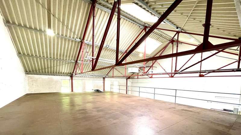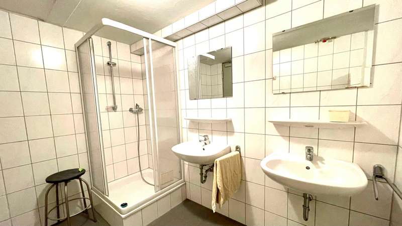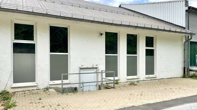 The production and storage space totals around 436 square meters spread over two floors. On the first floor there are additional social rooms, a toilet, oil heating and a file room. On the second floor there is a large office room, a smaller room, the kitchenette, toilet and a storage room. The office furnishings can be taken over as an option. The parking area is approximately 500 square meters and is located behind the hall, as are two further parking spaces. Approximately four further parking spaces are available in front of the hall.