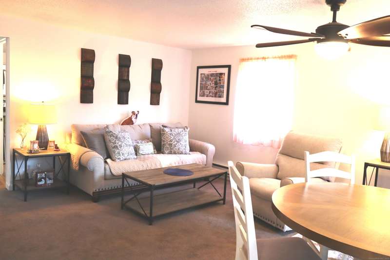 Move in Ready...Two Bedroom, one bath, top floor Ranch style condominium, Freshly painted, newer appliances (stove, microwave, and wall air conditioner never used). Electrical has updated panel and outlets, along with all new ceiling fans. Eat in kitchen with plenty of light. Dining/living room combination with sliders opening to spacious deck. Bathroom has been updated with a marble top vanity, comfort height toilet, and oversized linen closet. Plenty of closet space for storage. Walking distance to grocery store, shopping, restaurants, and bus line. Community pool and laundry area. Easy access to I-84. Some furniture included...ask agent. Property being sold as is. **Subject to probate approval