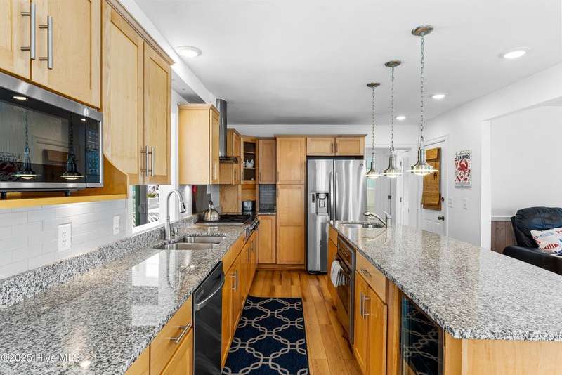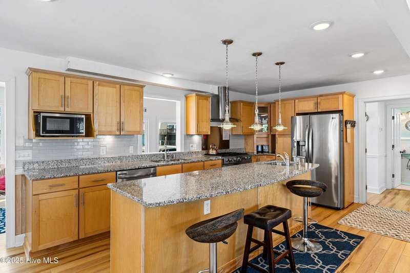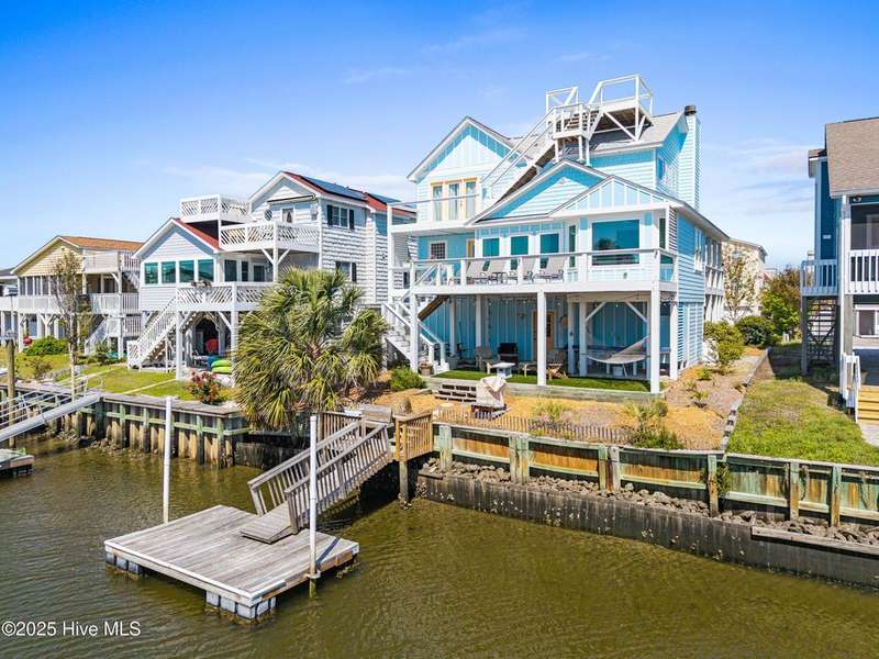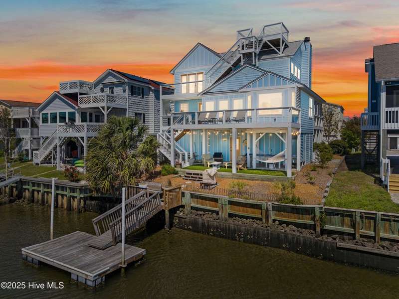 This beautiful 4 Bdrm, 3 Bath canal front home is a perfect blend of casual elegance & turnkey convenience. Thoughtfully updated & move in ready! I Generous indoor spaces filled w/ nat. light & a seamless connection to the outdoors. Guests will enjoy multiple decks with panoramic canal views. Enjoy al fresco dining, sunset cocktails, morning coffee catching a sunsrise or boat watching on the widows walk. The main floor offers an updated kitchen w/ a built-in 6 burner gas range, custom downdraft, granite tops, subway tile bksplsh, ss appliances, built-in wine refrig., veg. sink, built-in oven w/ convection, ample cabinets & a large island for extra seating. The family room is open to the kitch & has a beautiful gas fp. & access to the front deck Brkf. nook is a light filled, cheery space. Guests can also enjoy games & reading in the sunroom area. Laundry room, bdrm & full bathroom on this flr. as well. Upstairs you will find the owner's suite w/ a stunning beadboard, vaulted ceiling, built-in desk area, ensuite bathroom w/ an updated walk in tile shower. There is also a private deck off this bedroom as well. Two other really generous size bdrms are on this flr. & both have wonderful natural light. The hall bathroom has been udated with a walk- in tile shower as well. The home stays nice & tidy w/ wood flrs throughout. White paint, updated light fixtures & custom moldings. The down below space offers ample storage for all your needs: vehicles, boat, kayaks, bikes & beach storage. Rest easy that all major mechanicals are udpated in recent years. Roof-2021, New Windows- 2021 & New HVAC's -2021. So much TLC throughout. Property has a wonderful rental history so please inquire if important. This home is appointed with quality, comfortable furnishings that welcome you in & makes it hard to leave. With generous indoor-outdoor living, water access, and an ideal location convenient to shops, dining & the beach, this is more than a home- it's a lifestyle!