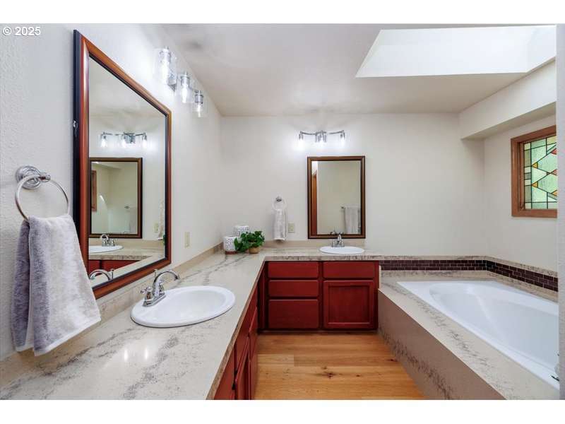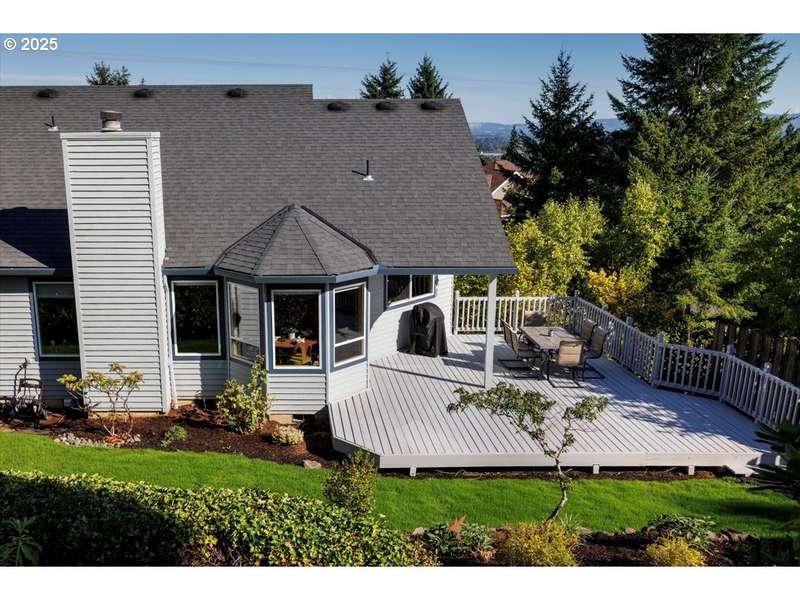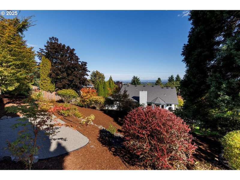 Experience stunning single-level living atop Cooper Mountain, where sweeping valley views create the perfect backdrop for everyday life. The spacious primary suite offers a relaxing retreat with a soaking tub, dual sinks, a generous walk-in closet, and even its own view. Designed for entertaining, the open great room flows seamlessly into a cozy nook and a chef’s kitchen featuring a gas range, island, and pantry. Hardwood floors add warmth and character throughout. Recent updates include gutters, blinds, furnace/AC, and windows, giving you peace of mind. Step outside to a beautifully terraced yard, freshly landscaped and ready to enjoy, complete with a large deck ideal for soaking in the breathtaking scenery. Extra large tandem garage.