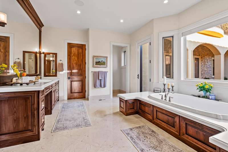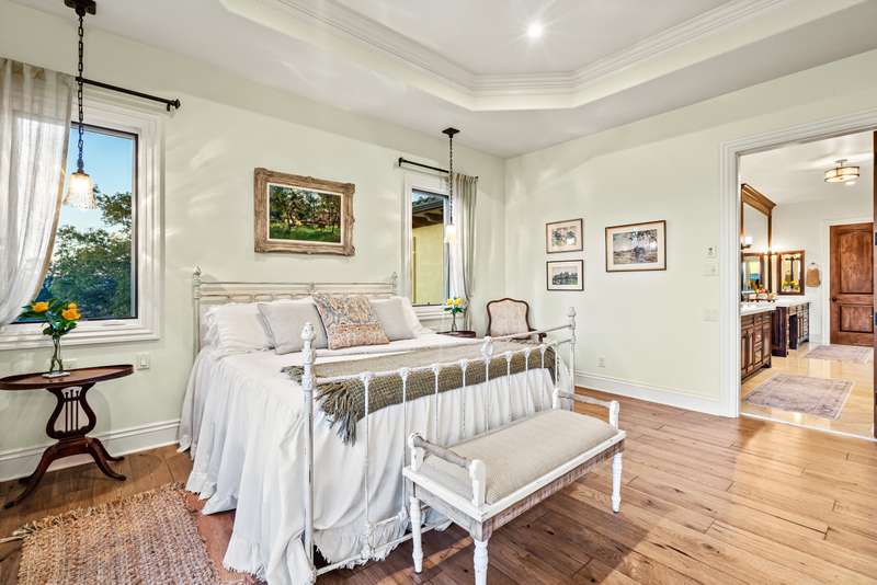 Surrounded by the natural beauty of Southern Oregon's Rogue Valley, this Mediterranean-inspired estate pairs timeless design with agricultural excellence. The 7,256± sq. ft. residence centers around a private courtyard and showcases cathedral ceilings, a grand entry, and a chef's kitchen opening to a grand great room and multiple outdoor living areas. The primary suite offers vineyard views, spa-style bath, and expansive deck, while amenities include an executive office, library, wine room, gym, sauna, and indoor saltwater pool. A matching 851± sq. ft. casita provides a luxurious one-bedroom guest retreat overlooking the vines. The 160-acre property features Celtic Moon Vineyards—42.5± acres of premium vines with 77.44 acres of irrigation rights. Located minutes from Eagle Point and Medford, this private estate captures the essence of Southern Oregon's wine country lifestyle.