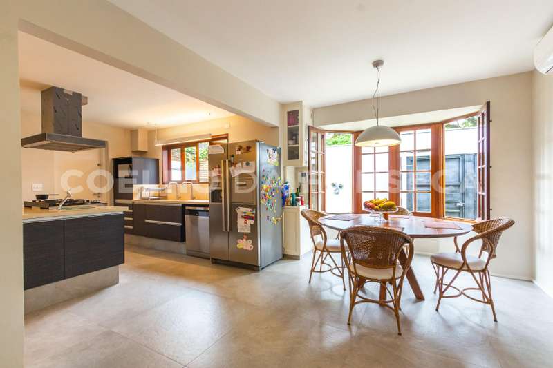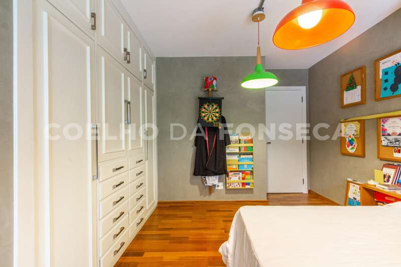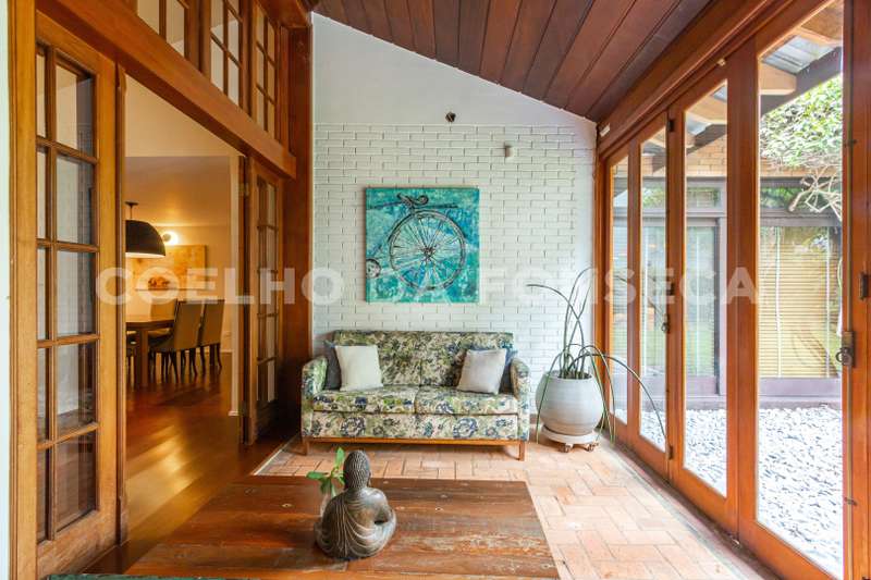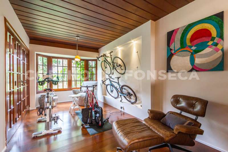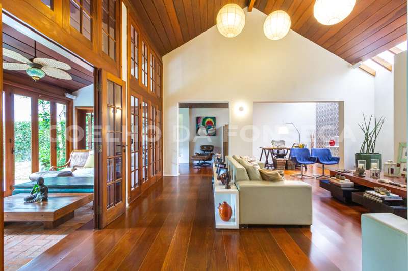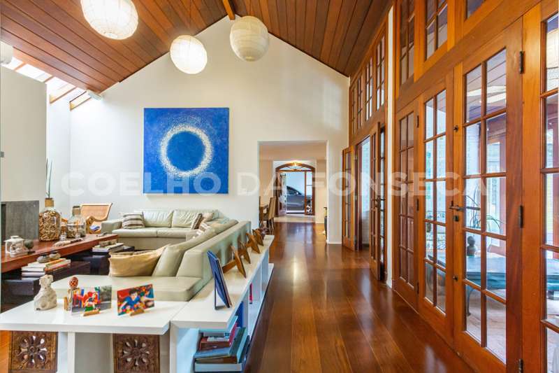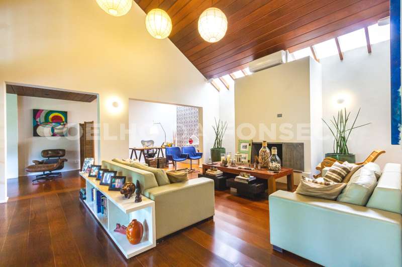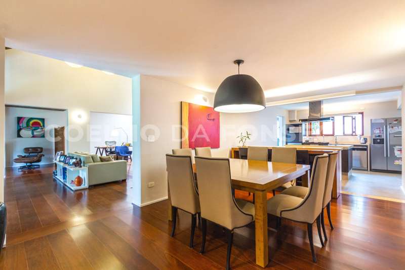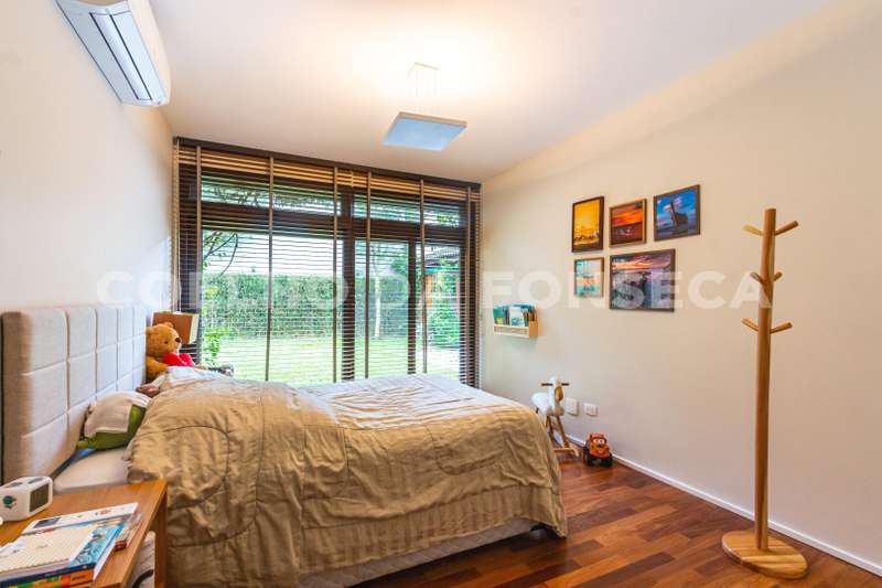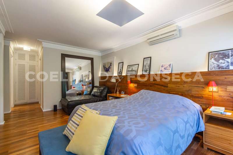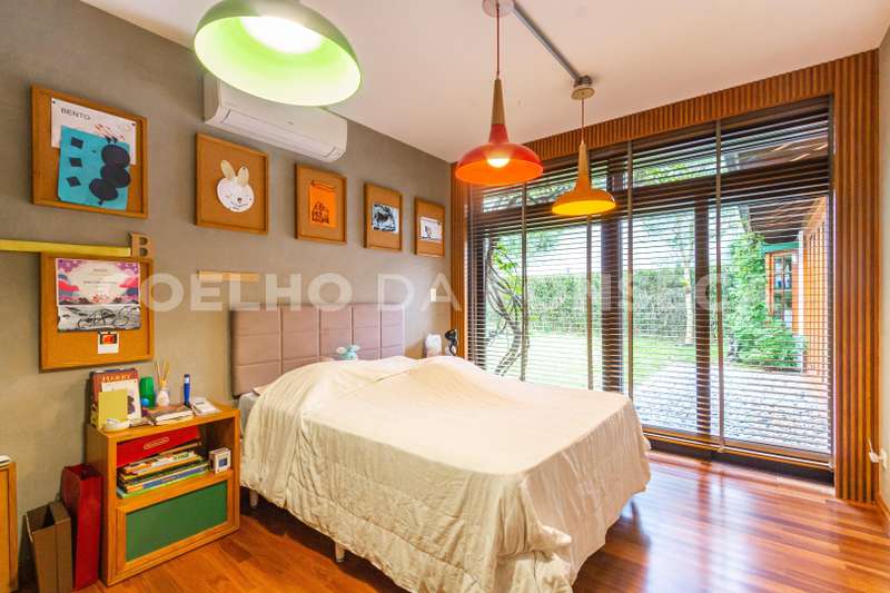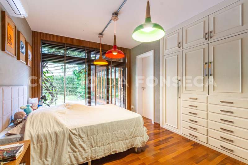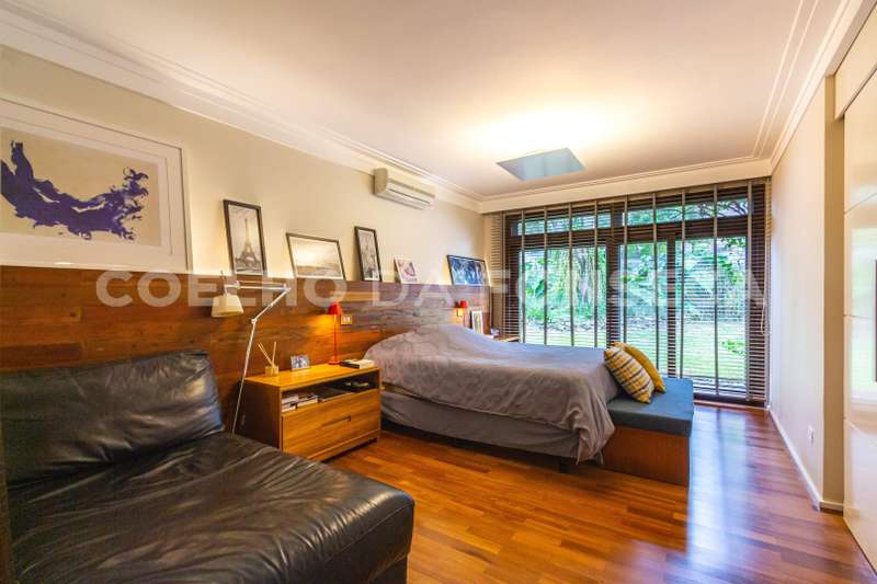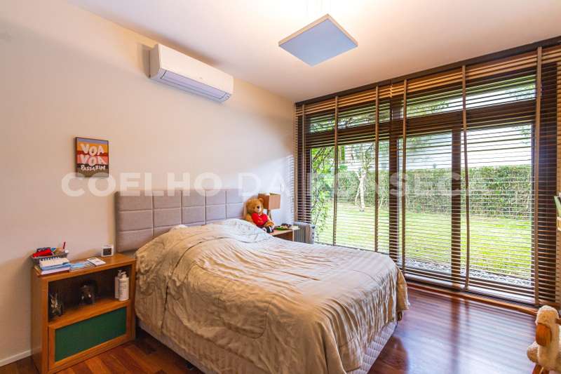 4 dormitórios todos com ar condicionado, sendo 3 suítes, uma Master com banheiros senhor e senhora, closets duplos, living para 3 amplos ambientes, sala de jantar, TV e varanda integrada, cozinha com integração para copa, escritório no mezanino, jardim com amplo e agradável, 5 vagas de garagem.