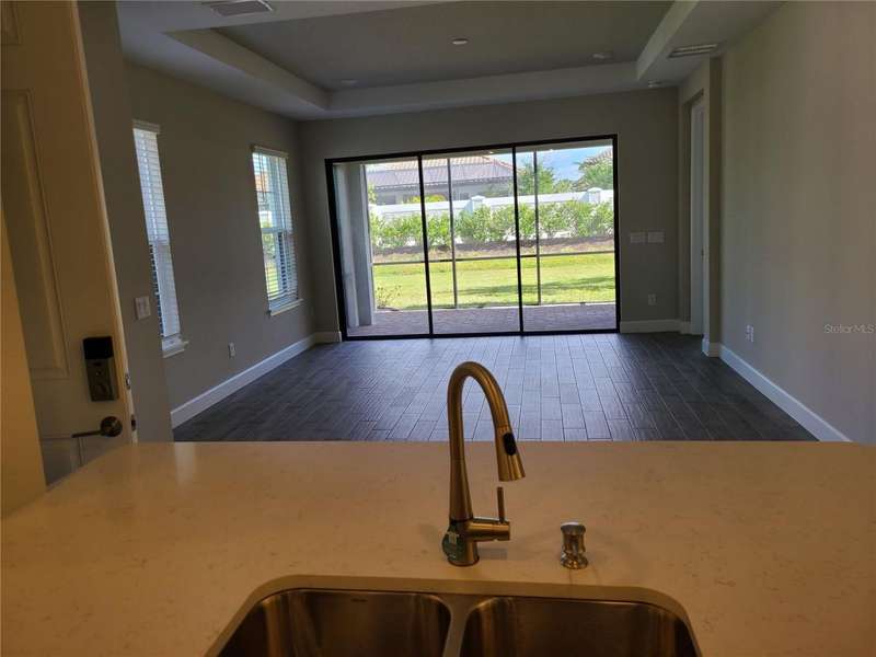 UNFURNISHED villa on a Cul de sac in desirable Gated Esplanade at Azario community. 2 Bedroom 2 bath plus den with doors. Den could be 3rd bedroom. Two car garage, and a side private entrance. Main area is Tile with a wood like feel. Separate dining area. Open kitchen overlooking the living room and dining area is prefect for entertaining. Oversize walk-in closet. Super private screened in lanai and on a Cul-de sac. Upgrades include tray ceilings, stainless appliances, quartz counters and extended lanai. Large windows bring in lots of light. Rent includes access to amenities include tennis, pickleball, bocce, resort style community pool, walking trails, fitness center are offered at the club. There is an 18-hole golf course. Lawncare is included. A minimum annual food and beverage must be paid by tenant. 6 + plus lease. They offer aerobic exercise or other classes or maybe, you need to relax at the spa and enjoy all the services. Pet Okay with owner approval. Move in ready.
