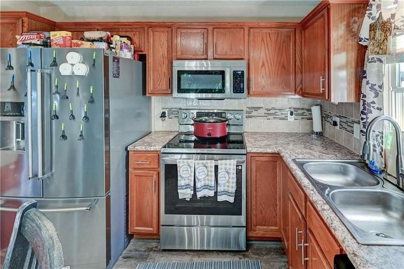 NEW Furnace (2025)! NEW Roof (2025)! New A/C (2025)! New Water Heater(2025)! LVP Flooring installed throughout and bathrooms remodeled (2023/2024)! Rare find and perfect for a First time home buyer, Investor or someone looking to downsize. The HOA maintains the exterior of the building so you can come home and relax. The open first floor is perfect for any occasion. Kitchen has easy access to outside with sliding door leading to patio. Laundry is upstairs conveniently in the hallway that also has LVP. The upstairs bedrooms are by far, one of the best features of this home. The Primary bedroom has all the room you need to unwind and is connected to a private full bathroom and has extensive closet space. The Secondary bedroom compliments the main bedroom with it's size, providing the space you need for years to come. Don't miss your opportunity to own this fabulous townhome in the highly demanded Pointe at Raymore community!