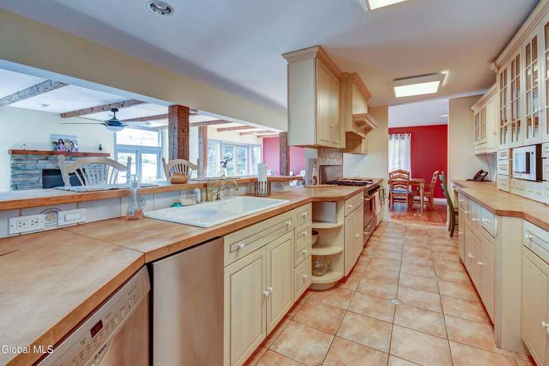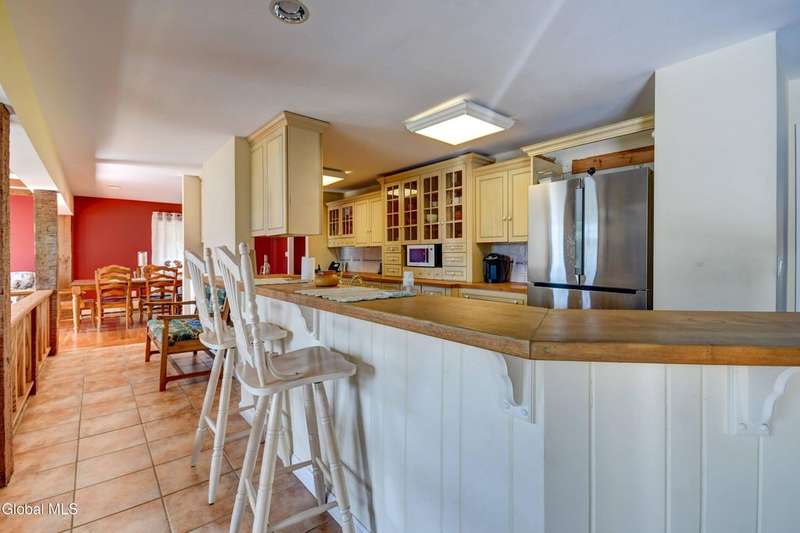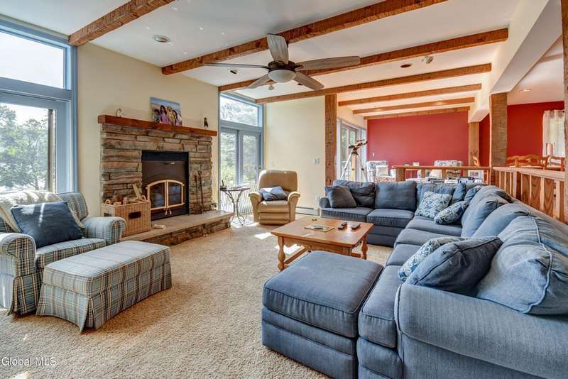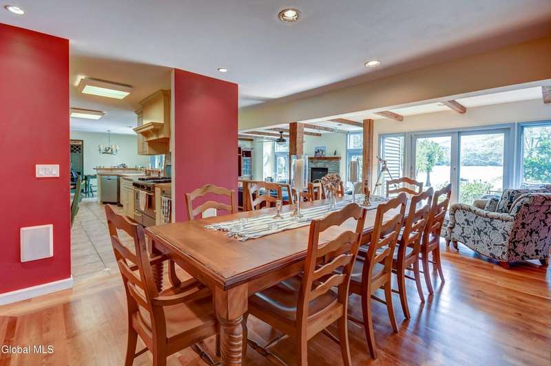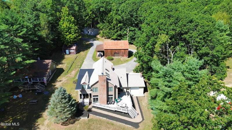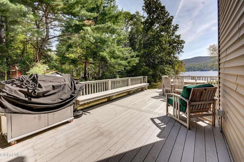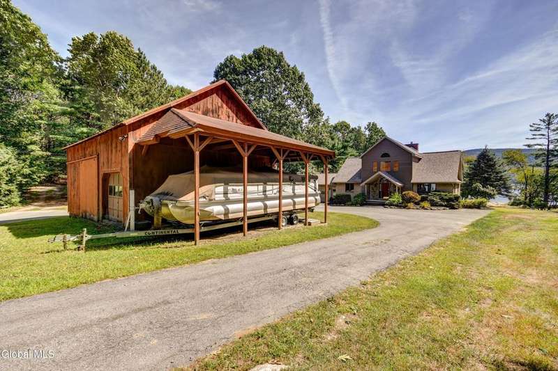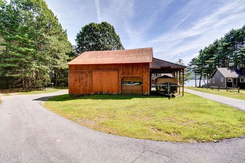 Spacious lakefront home on a level lot with 91' of sandy gently sloping beach on the Great Sacandaga, plus 2nd home for guests, woodshed and large generous barn! This lakefront retreat designed for entertaining offers an open floor plan with a great room at the center, 2-full baths and (3)-1/2 baths. The home boast abundant lake views & a wood burning fireplace. The oversized galley kitchen is fully appointed to meet all of your needs, including butcher block throughout, a huge walk-in pantry, 6-burner dual fuel double oven, gas range, with griddle; warming drawer, double door refrigerator freezer with ice maker, dishwasher, trash compactor & microwave. Most appliances are 5 years old or less. The breakfast nook also includes a wet bar with stand-alone ice maker and second dishwasher. Laundry closet is located in the mudroom off the attached one car garage with direct lake access, 1/2 bath and a wood burning stove. The master suite features lake views, vaulted ceilings with skylights, a large private bath, with jetted tub and steam shower, an oversized walk-in closet and flex room for private office or sitting area complete the space. Full basement with Bilko doors offers two finished rooms plus additional unfinished space for a workshop or general storage. In addition to the primary residence, the property also includes a second 3-bedroom, 2-bath home w/ woodburning fireplace and fully remodeled master bath. Great for guests or in-laws. Also on-site are a large, enclosed barn with carport and a second pole barn with 3 bays, all on a total of 3.7 acres. New roofs on both houses in the last 5 years. New furnace & ductwork in the smaller home. Primary residence is wired for a portable generator. Contents are negotiable.