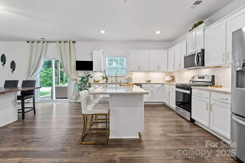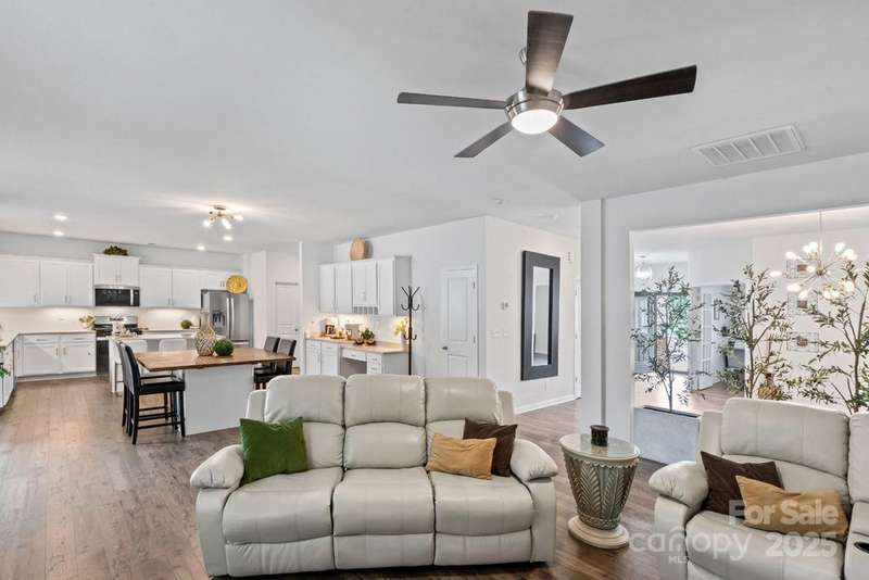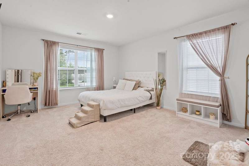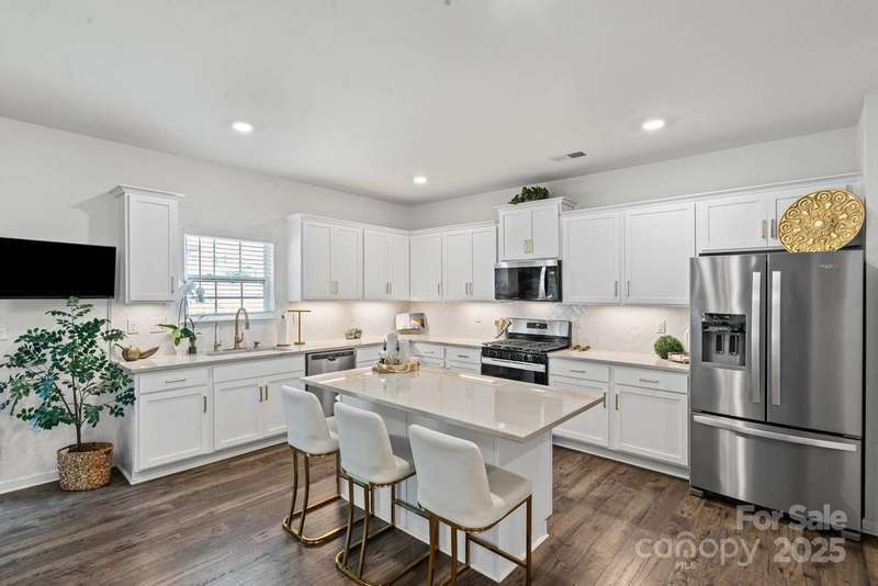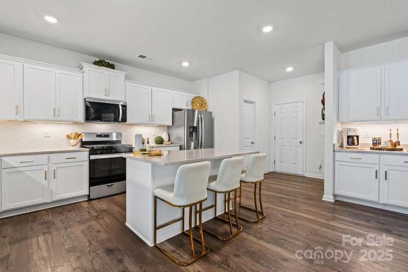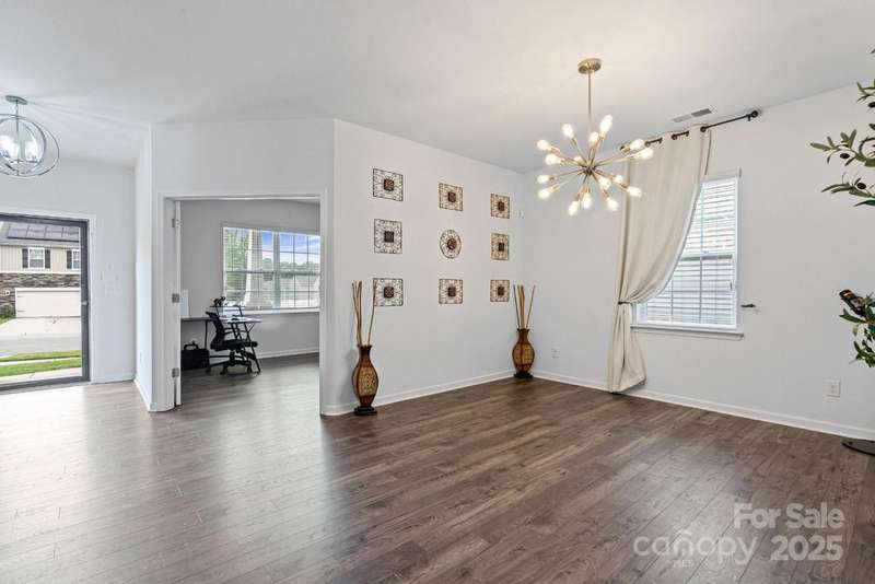 Beautiful Home! ? This home offers 4 bedrooms, 3.5 baths, an office room, and a spacious loft. The gourmet kitchen features stainless steel appliances, a 5-burner gas range, quartzite countertops, white shaker cabinets, under-cabinet lighting, center island, and large walk-in pantry. The main level includes a formal dining room, breakfast area, and family room with a seamless flow-perfect for entertaining. Upstairs, the expansive primary suite boasts vaulted ceilings, a ceiling fan, bath with double vanities, walk-in shower, private water closet, and oversized walk-in closet. Two additional bedrooms have walk-in closets, and one room connects directly to the hall bath. A versatile loft provides extra living space, and the laundry is conveniently located upstairs. Enjoy outdoor living in the large, backyard with a 6' white vinyl privacy fence. The expanded concrete patio, pergola, and fire pit create the ideal space for gatherings. Located minutes from Hwy 485, shopping, and dining.
