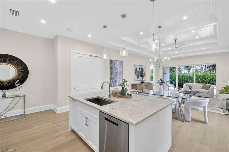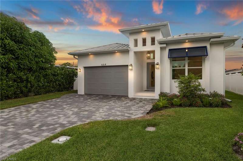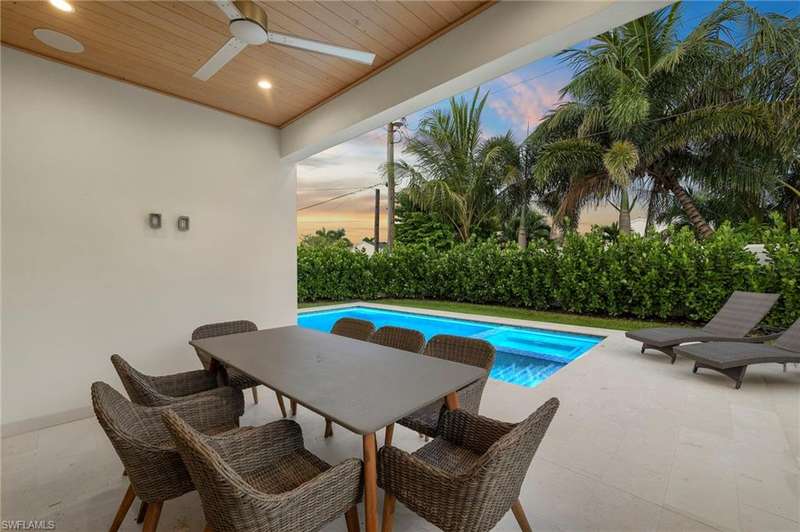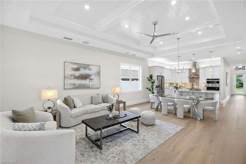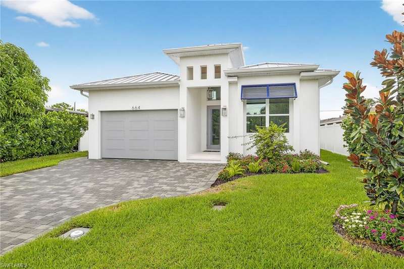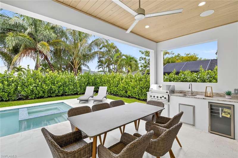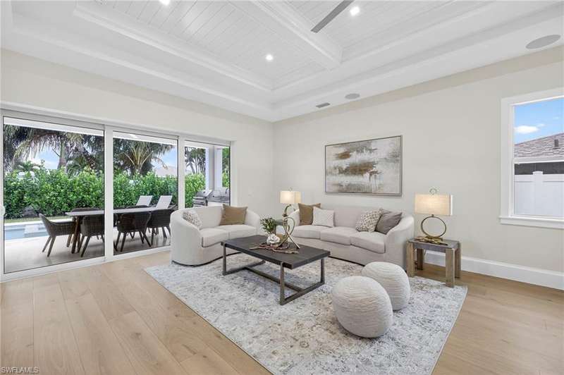 Exciting opportunity for new construction in Naples Park in an X flood zone! MR Square Construction, Inc. presents this spectacular southern exposure, four bedroom, three bathroom, pool home residence that was just completed. This gorgeous home will showcase high-end finishes and upgrades throughout an open concept floor plan; smart home automation, Lutron Caseta lighting system, GE profile appliances, high ceilings, wide plank wood floors, outdoor living area with summer kitchen, resort style pool and spa, hurricane impact doors/windows, security cameras and metal roof. The light and bright kitchen is outfitted with beautiful solid Taj Mahal / quartzite countertops, high end cabinetry, and kitchen aid appliances. The backyard oasis with pool, poured concrete pool deck, spa, and outdoor kitchen showcases the Florida lifestyle at its finest. The conveniently located subdivision of Naples Park is within walking distance to the Mercato, a few minutes to the Waterside Shops, and just a sho