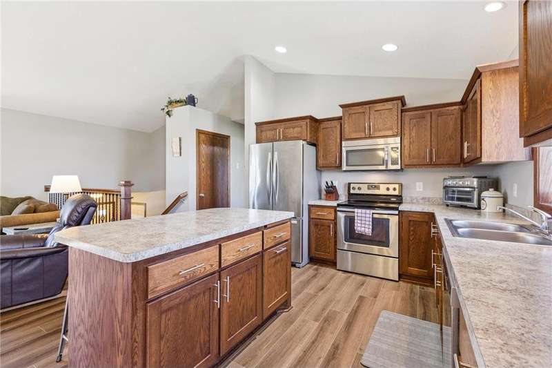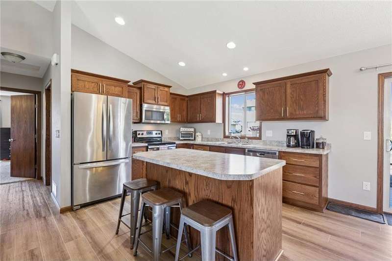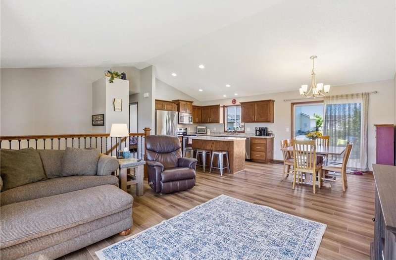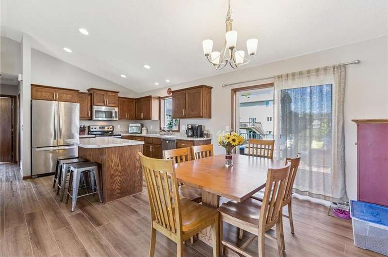 Come to Delano and live. Premium location in a great neighborhood close to parks, trails award winning schools and shopping. 3 bedroom, 2 bath with open kitchen, living room and dining with center island and breakfast bar. Two nice size BR with large closets also on main level. The lower level features nice size family room and gas fireplace, a rec space and additional bedroom and a laundry room and bath. Enjoy summer outdoors on your maintenance free deck and fenced in back yard.