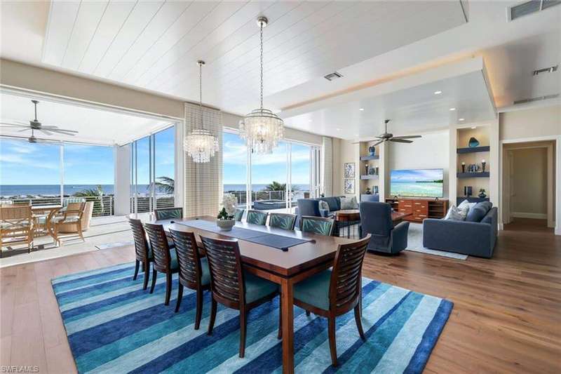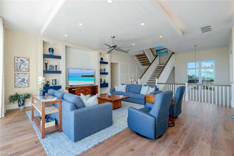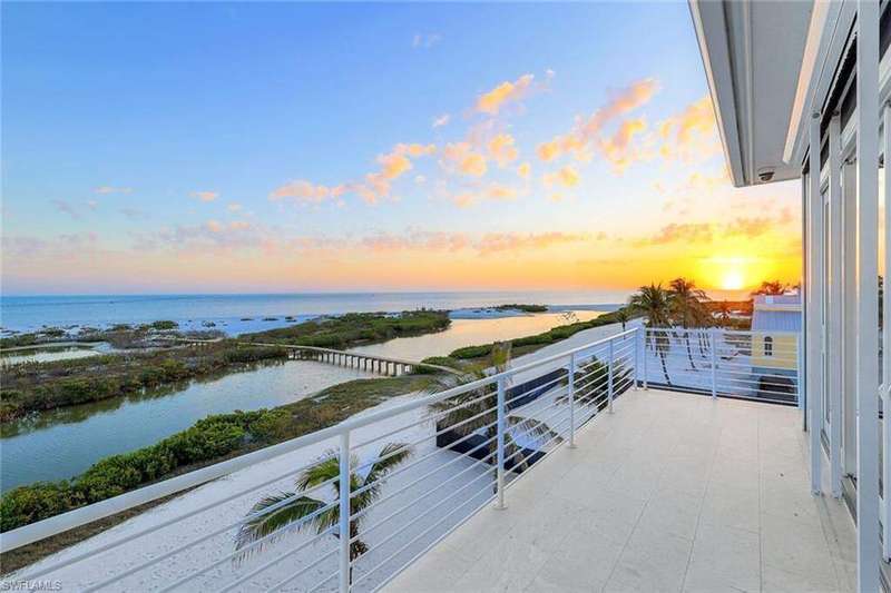 An exclusive & spectacular beachfront home located on the tranquil south end of Fort Myers Beach offers unrivaled panoramic gulf & beach front views stretching from Naples to Sanibel on clear days & evenings serving as a perfect backdrop of luxury & privacy. Positioned on a rare section of beach w/ultra-private backyard yet, from the home, you have direct access to the sandy beach & gulf waters. Featuring 6 spacious ensuite bedrooms or 5 ensuites & a den w/full bathroom, the residence boasts 10' to 15' high ceilings, stunning hardwood & tile flooring, fully color-coordinated accents, an open 3-tiered floorplan drawing in natural light throughout plus, an elevator that provides easy access to all levels, ensuring convenience throughout the home. The chef-inspired kitchen is equipped with top-tier appliances, dual ovens, dual dishwashers, large walk-in pantry, wet bar, multiple dining options from casual to formal both inside & outside, ideal for both everyday living, entertaining & those special gatherings. Step outside to the expansive patio, where you'll enjoy a full outdoor experience from lounging, sunbathing, dining & more. Complete outdoor kitchen, fireplace, infinity pool & spa, all designed for taking full advantage of the mesmerizing sunsets & living the ultimate beach front lifestyle. Designed with comfort, efficiency & luxury at top-of-mind, this home features high-impact windows & doors, electric Clear Choice Storm Shutters, motion-senor automated sliders that open up to the beach, a garage that follows the footprint of the home to accommodate 6+ cars, double laundries (main & upper level) & Lutron lighting system. Additional highlights include two new A/C systems (2024), on-demand gas water heaters, a 1,000-gallon underground propane tank, a MyQ WiFi-controlled garage & beautiful, irrigated landscaping. A short drive, bike ride or trolley connection can take you to Lovers Key State Park, a variety of local marinas, various local shopping & dining venues as well as easy access to a number of public boat launches. The trolley-stop is just across the street. This home is perfect for enjoying the finest in beachfront living as well as both current & future local attractions as investment in the community continues to unfold.