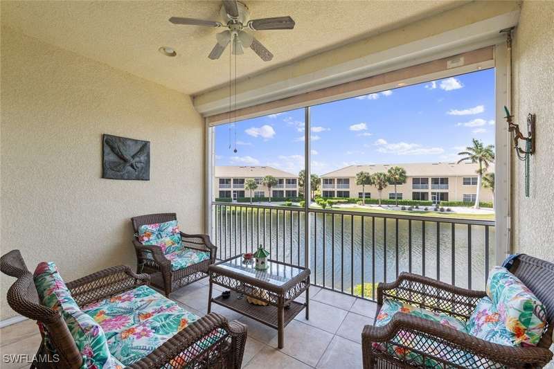Under 300k for this stunning Lakefront condo with beautiful views, TURNKEY, 2 Bedrooms, 2 bath, den or dining, condo. This property comes with an assigned carport, outdoor ground floor storage room and is located in Sonsette and this Captiva/Sanibel like-community of Lucaya. Brand new air conditioning system (September 2024), Accordion Hurricane Shutters and roll-down on lanai. Reasonable Fees and Gated! Lucaya's prime location places you near the best of Fort Myers, including shopping, beaches, marinas, restaurants, and the RSW Airport. Within the gated community, residents enjoy access to two resort-style pools, a community room, and a state-of-the-art Gym,a vibrant and active lifestyle. Original Owners, never rented, never flooded.