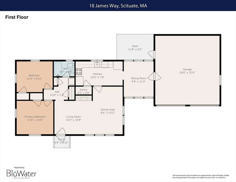 Location, Location! This Adorable 2-bedroom 1 bath ranch is centrally located in a popular neighborhood in the heart of Scituate and is in walking distance to the Lawson Common, tennis courts, town library and the new senior center. A wonderful right-sized starter home or perfect for those downsizing, this property offers the convenience of one floor living. The expansive 12,546 sq ft lot offers a wealth of possibility for increasing this home's living area. The sunny south facing rear deck overlooks beautiful plantings & is the perfect spot for relaxing with your morning coffee. New upgrades include 3-bedroom septic, kitchen appliances (electric range, dishwasher, refrigerator) and electric water heater. The large 2 car attached garage provides secure parking and additional storage space. Built in 1956 this home holds timeless appeal. Embrace its charm and the essence of Scituate living with all the wonderful area amenities.