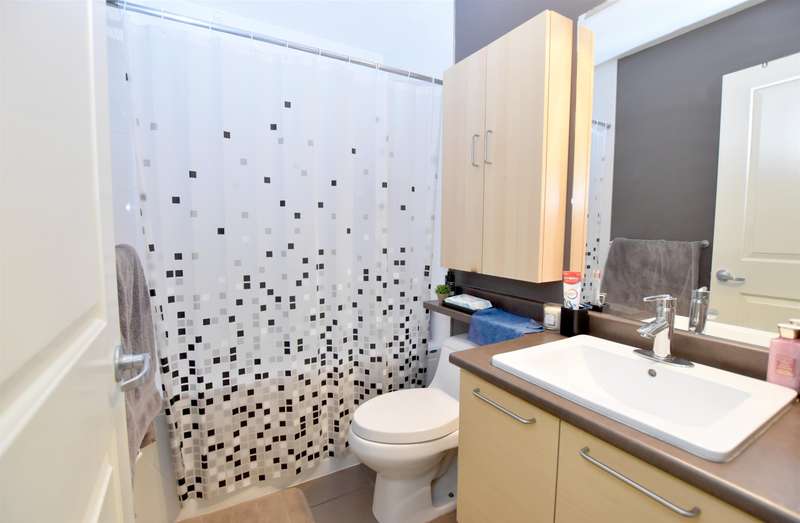 Move in ready home is conveniently located across Nesters Market and Shoppers Drug Mart, with quick access to Gateway station, Central City and SFU. This 2 bedroom 2 bathroom East facing top floor unit features a bright and spacious layout, high ceilings, stainless steel appliances, granite counter tops and a large balcony perfect for BBQ. Unit includes 1 parking one a storage locker. Generous amenities include a gym, club house, pool table, hot tub and sauna. Measurements approximate & info not guaranteed, buyers to verify if deemed important.