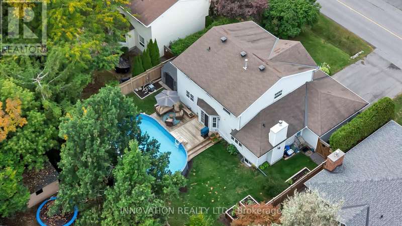 Welcome to this exceptional family home in the heart of Stittsville! Ideally situated close to schools, parks, and all amenities! This 4 +1 Bedroom, 3 Bath gem is designed to combine comfort and style. Inside you'll find a spacious Living room with a striking bay window, french doors and electric fireplace, an entertainment-sized Dining room, and a beautifully updated Laurysen Kitchen featuring granite countertops, dual breakfast bars with a seamless flow to the sun-filled Familyroom and cozy gas fireplace. Gleaming hardwood and custom tile run throughout the main, complemented by the convenience of a well-planned Laundry/Mudroom. Retreat to the expansive Primary suite with a spa-inspired ensuite, showcasing a Roman tub along with 3 other generously sized Bedrooms. The Lower level is designed to bring everyone together with a newly renovated Recreation room complete with a 2nd gas fireplace, quality vinyl flooring, built-in bar and a versatile 5th Bedroom ideal for in-laws or a teen retreat! Resort-style living in your private backyard oasis complete with an above-ground pool, expansive deck, and patio area, all framed by a charming front veranda that enhances the homes curb appeal. A true gem offering both lifestyle and location. Kitchen, tile, hardwd & windows/doors '10, basement '19, fence/gate '20, main upstairs bath '22, carpeting' 24. 24 hour irrevocable on all offers (id:6509)