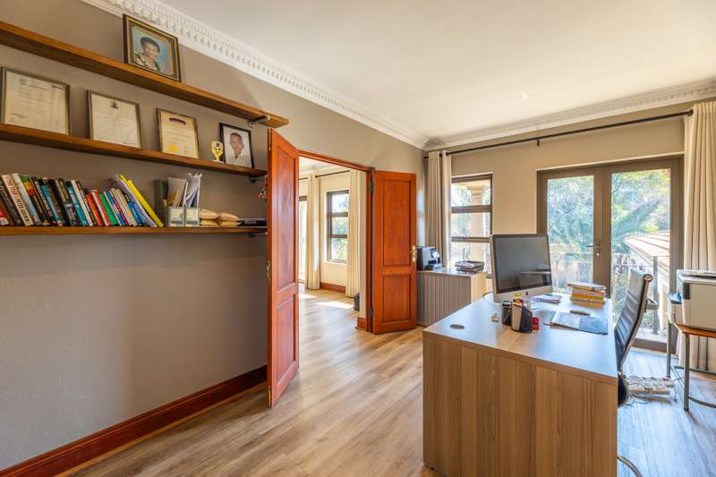 This beautifully maintained 4-bedroom home is perfectly positioned in the prestigious Dainfern Golf Estate, offering spacious interiors and a lifestyle of comfort and security. The home features two generous lounges, both fitted with air conditioners, and three downstairs bedrooms — one en suite — all with air conditioning for year-round comfort. Upstairs, the expansive main suite includes a luxurious en suite bathroom and a private study, ideal for working from home. A culinary delight awaits in the open-plan kitchen, seamlessly flowing into a well-appointed dining area — perfect for both everyday family meals and entertaining guests. Outside, you'll find a feature swimming pool set in a manicured garden, creating the perfect space to relax or entertain. The property also includes three garages, offering ample parking and storage. Enjoy the world-class lifestyle Dainfern has to offer, including 24/7 state-of-the-art security, a championship golf course, tennis courts, soccer pitch, scenic walking trails, and a vibrant, family-friendly clubhouse restaurant.