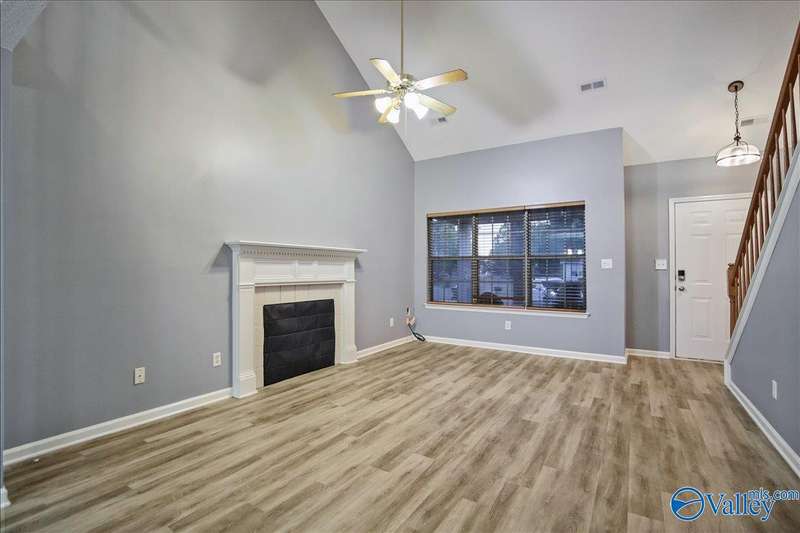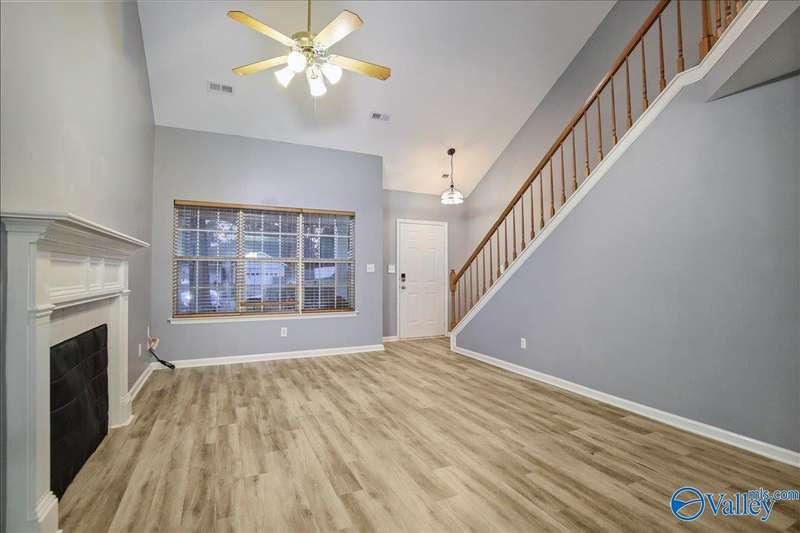 This home is perfect for first-time buyers or investors! Conveniently located minutes from Research Park & Redstone Arsenal. The living room features a vaulted ceiling & a wood-burning fireplace. Enjoy luxury vinyl plank flooring throughout the main level, with carpet in the bedrooms & loft area. The primary bedroom & laundry room are located on the main floor, while the second level includes two additional bedrooms, a full bath, & a loft area. Nestled in a neighborhood along the Indian Creek Greenway, residents can enjoy community amenities—including a playground, 18-hole disc golf course, covered picnic pavilions, restrooms, & a fenced dog park.