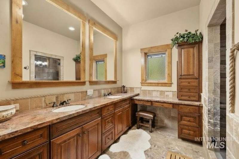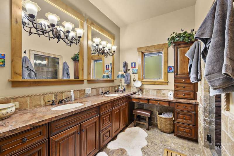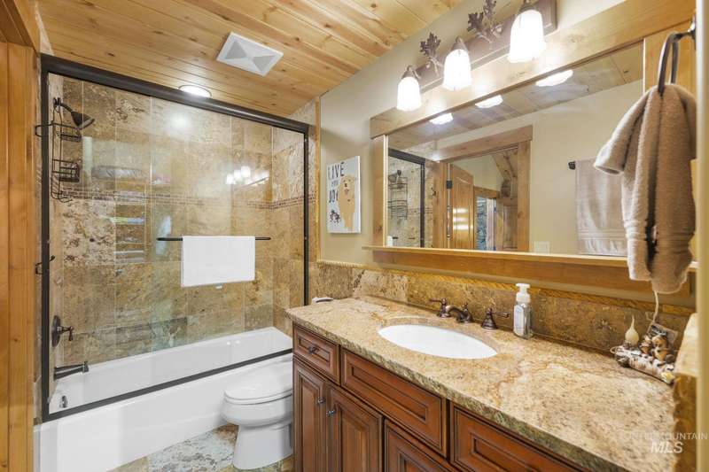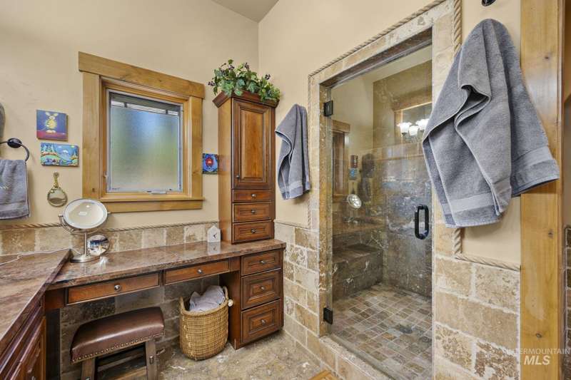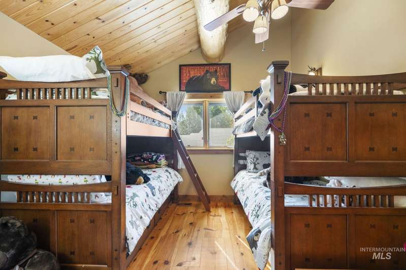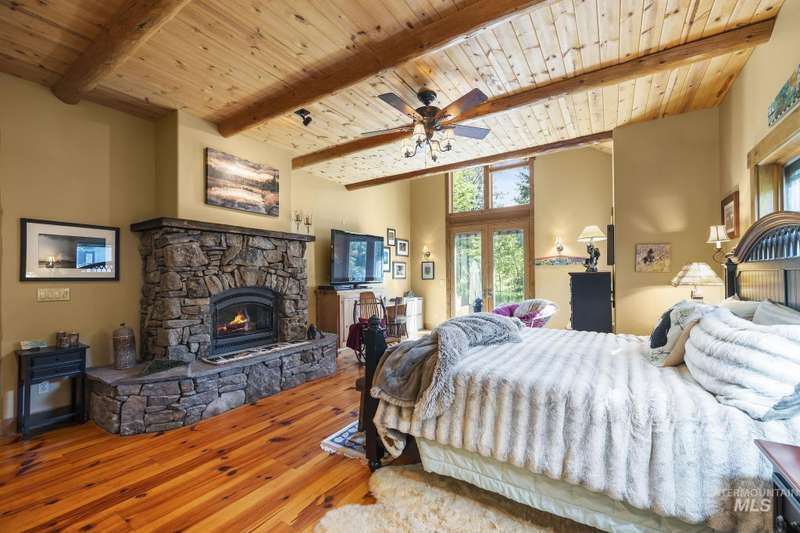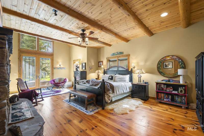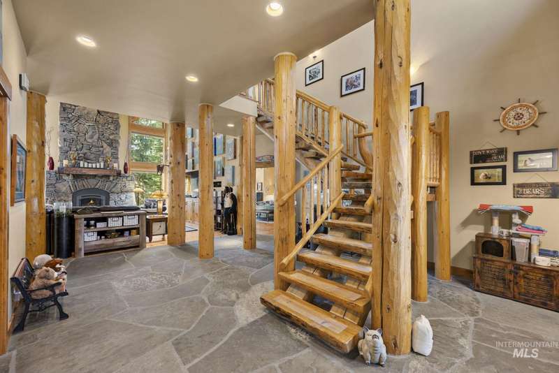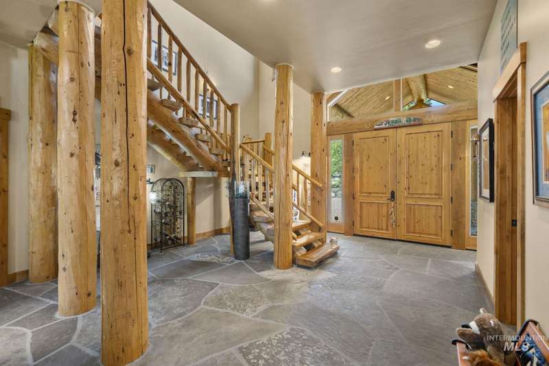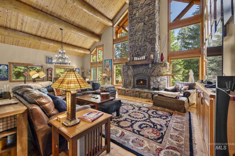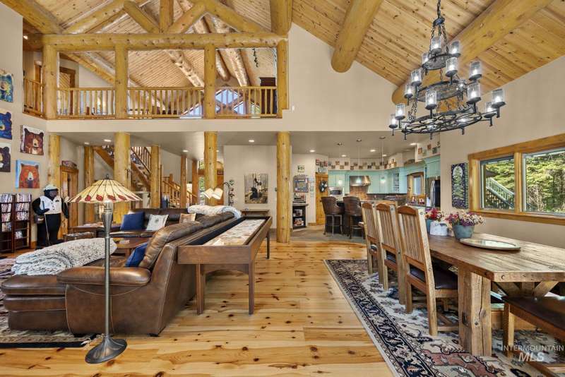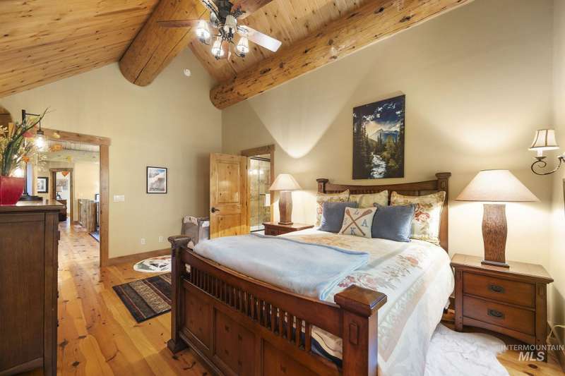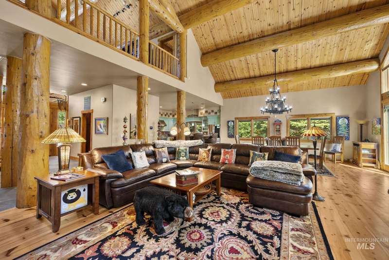 Experience the perfect blend of timeless architecture and modern luxury in this stunning custom log home situated on the serene golf course. Boasting a massive primary bedroom, a Jr Suite, 2 spacious bedrooms and 3.5 bathrooms, this exquisite residence offers comfort and elegance at every turn. Relax by one of three beautiful fireplaces, unwind in the luxurious steam shower, or enjoy the convenience of his-and-her closets in the primary suite. Beautiful wood floors flow seamlessly throughout, complementing the vaulted ceilings with impressive gorgeous log beams that add warmth and character. A versatile 200 square feet of unfinished space presents a blank canvas for your personalized touch—ideal for a home office, studio, or additional storage. The beautifully landscaped yard surrounds the home on nearly an acre of land, providing privacy and space to enjoy the outdoors. Additional features include a spacious 3-car garage, a brand-new roof, water heater, and furnace, ensuring peace of mind for years to come.