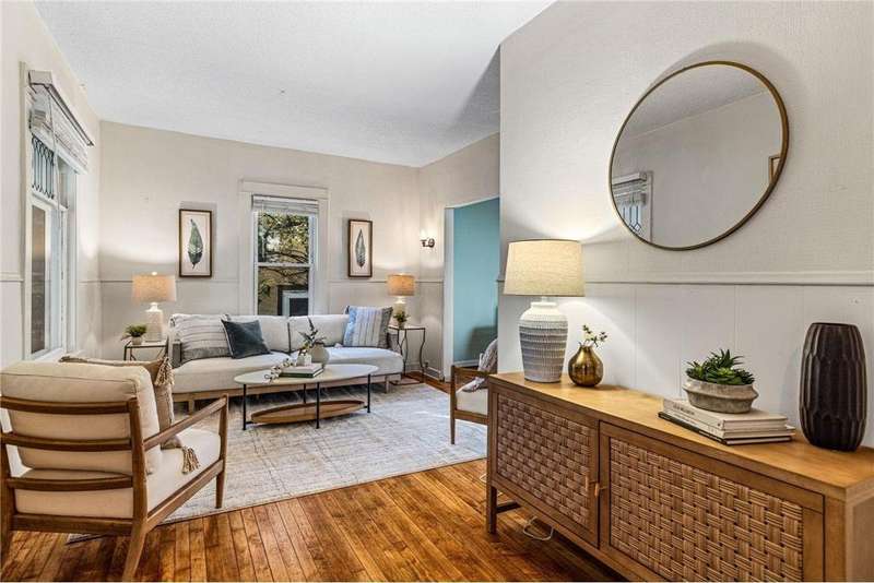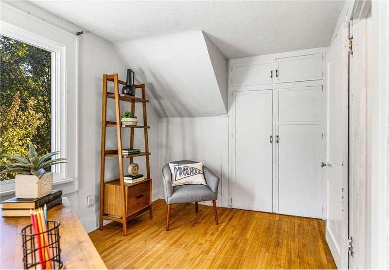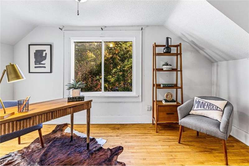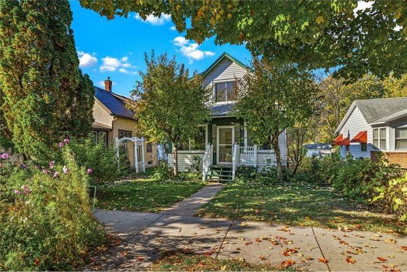 Adorable home in fantastic NE Mpls location with so many updates - new windows, roof, and attic insulation! Main level features beautiful hardwood floors, high ceilings, and a large leaded glass window. The updated kitchen is open to the dining area and has a convenient mudroom off the back entrance. Upstairs is filled with light due to large windows in both bedrooms, the bathroom, and even a window in the closet! Primary bedroom has new carpet and enough space for a king size bed. Backyard is fully fenced with established perennial gardens and raspberry patch. There isn't a garage, but an off-street parking pad in the front of the home provides easy access to both front and back entrances. A charming and spacious three season front porch adds space for relaxing in the warmer months. Walk around the corner to Cosmic Coffee, a couple blocks to Columbia Park (golf course, cross country skiing, playground, dog park), or hop on the Grand Rounds bike trail that will connect you to the entire city.
