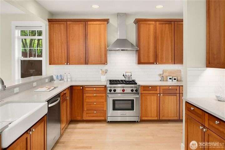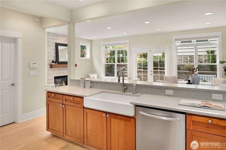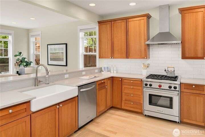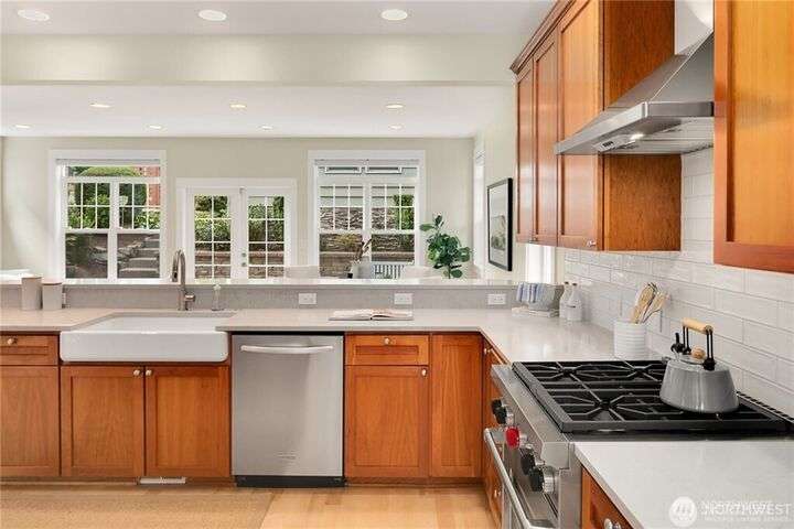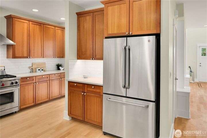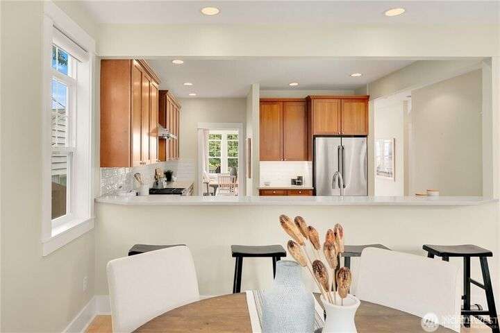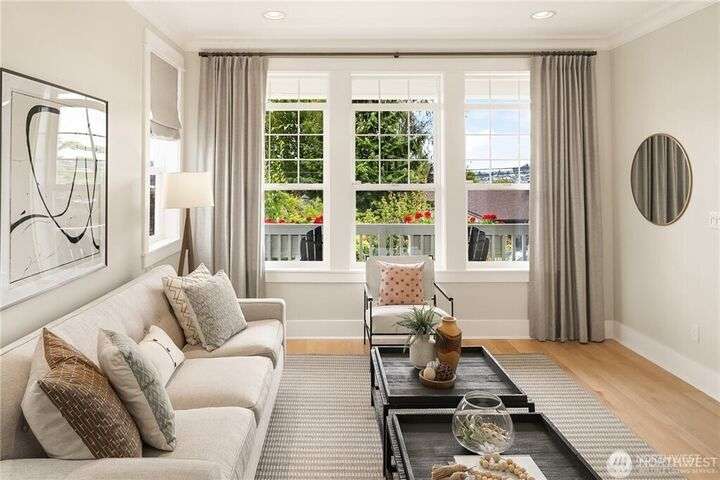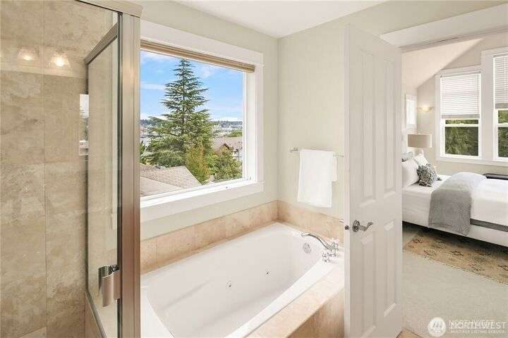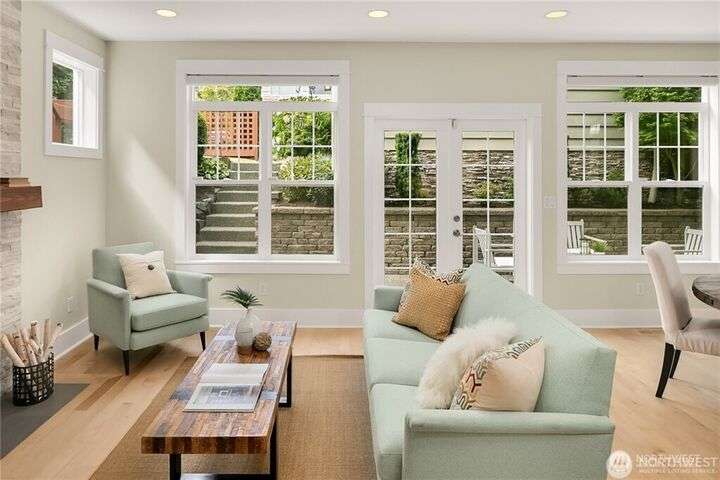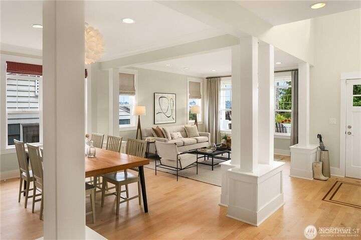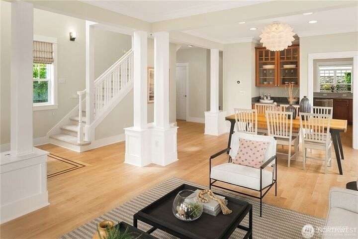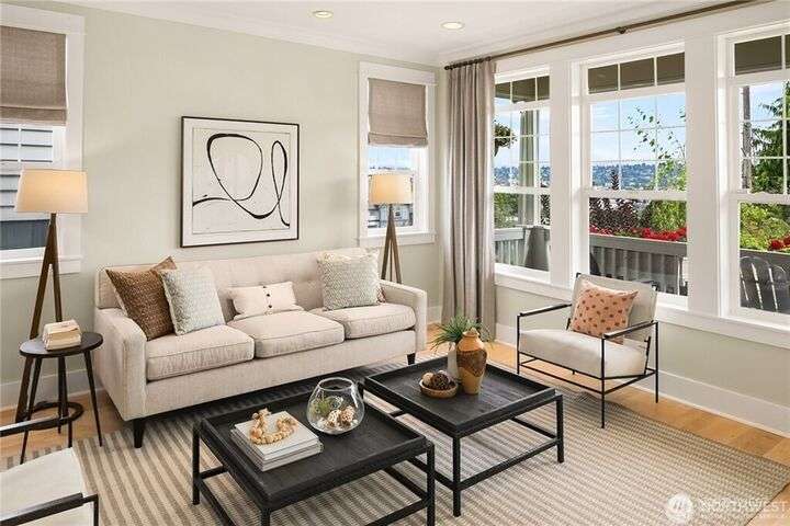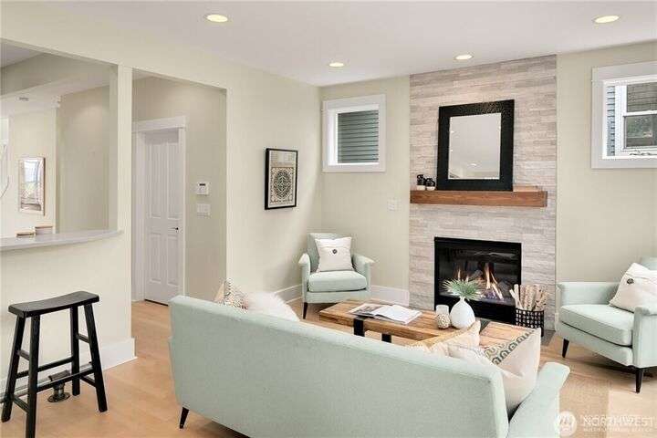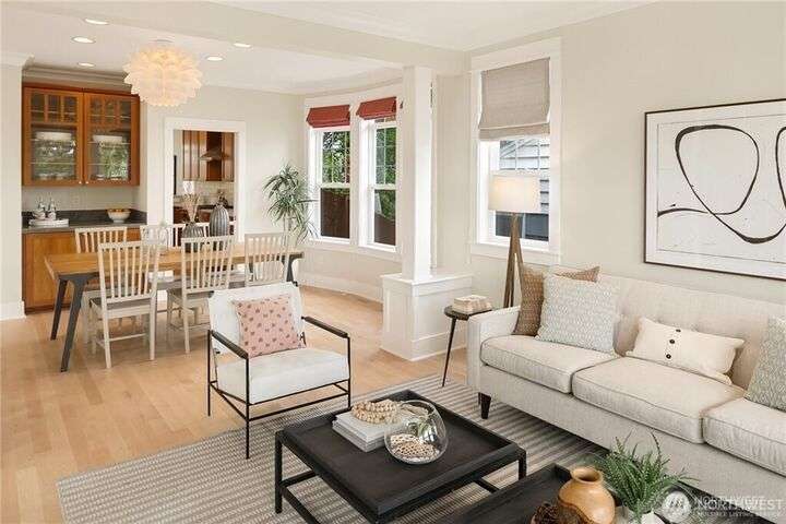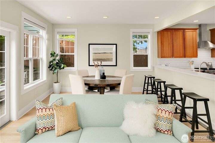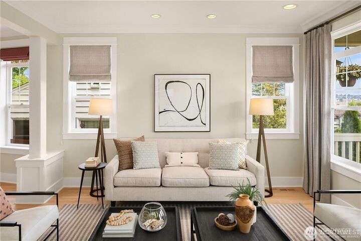 Charming Magnolia Craftsman elevated for privacy with stunning Cascade views! Relax on the classic front porch, then step into a light-filled living room with soaring 9-ft ceilings and custom millwork flowing into a formal dining space. The brand-new chef’s kitchen features upscale appliances, abundant counters, and a walk-in pantry. A cozy family room completes the main floor, while upstairs offers a rare 4-bedroom layout plus full laundry. The finished lower level with high ceilings adds bonus space for movies, play, or work. Enjoy a two-car garage on a street-to-street lot and easy access to Discovery Park, Ballard Locks, trails, and more.