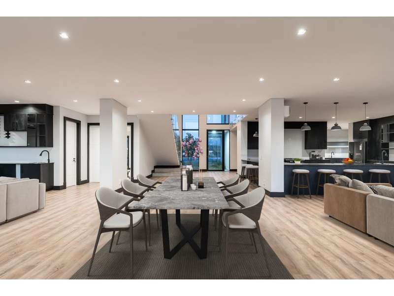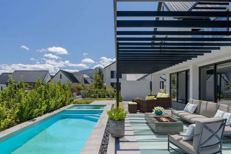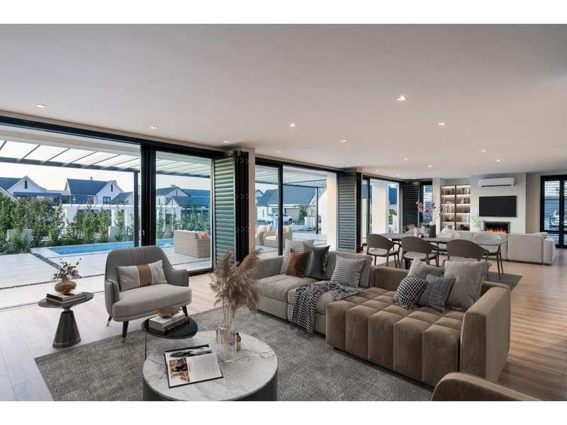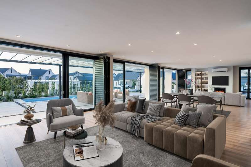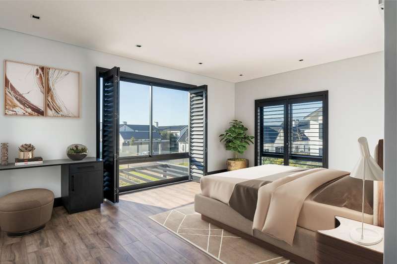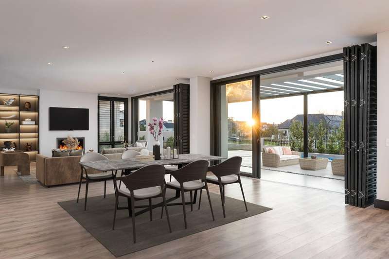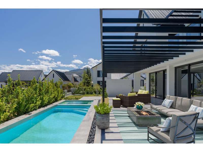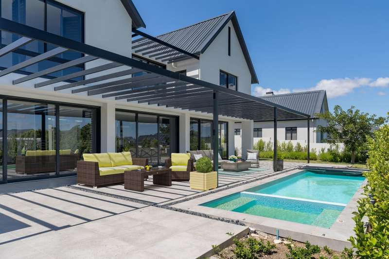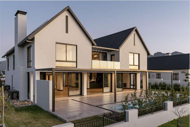 Exclusive sole Mandate! Situated in La Vue, this sophisticated north-facing masterpiece offers the essence of Val de Vie Estate living. A true family sanctuary overlooking a park with breathtaking views of the valley. Discover a world of convenience and opulence in this voluminous and light filled home, where every detail has been meticulously crafted to perfection. With expansive entertainment areas blending indoor and outdoor spaces, this home sets the stage for effortless entertaining. The interior unfolds gracefully into an open-plan living space that effortlessly integrates a TV lounge, dining area, a massive kitchen, and entertainment room with built in fireplace. Stacking doors connect this area to the braai patio overlooking the inviting pool and garden offering picturesque views of Paarl Rock in the distance with a lush greenbelt in front ensuring space and privacy. Practicality meets elegance in the design, with a massive walk-in pantry, and spacious scullery/laundry area leading to the laundry courtyard and 3 garages The downstairs offers an expansive guest bedroom as well as further entertainment space and convenient bar area. A sizeable pyjama lounge on the first floor, offers a perfect space for relaxation and play. The 4 bedrooms on this level are generously sized, each boasting fitted cupboards and en-suite bathrooms. The main bedroom stands out as an unparalleled of luxury, featuring a sumptuous bathroom, dressing area, breathtaking views. An open plan office competes the upstairs. Features such as a full solar and battery system, sleek cabinetry and shutters and 3 wood burning fireplaces, make this a standout home not to miss!