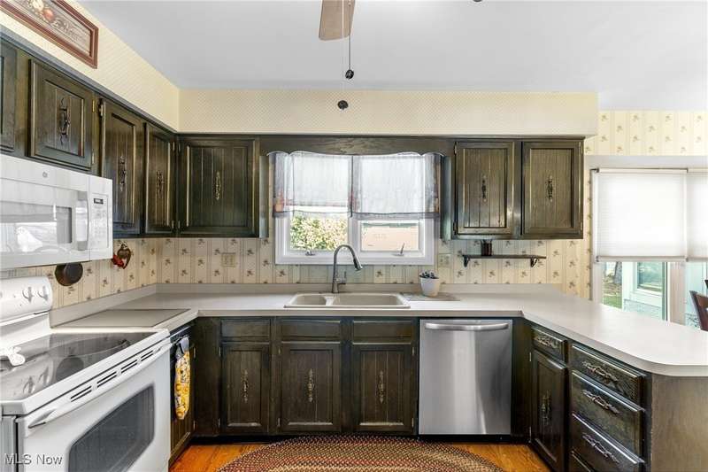 Welcome Home to this Beautiful Elyria Ranch! Tucked away on a quiet dead-end street, this charming ranch home offers stunning curb appeal and a peaceful setting, all while being just minutes from local amenities, highways and Lorain County Community College! Step inside to a warm and inviting foyer that opens to the bright and spacious living room, filled with natural light from the large front window. Which leads you into the formal dining room that features classic wainscoting and flows seamlessly into the open kitchen and breakfast nook, perfect for entertaining. Just off the kitchen, you'll find a cozy family room with a gas fireplace, creating the perfect spot to relax on cold evenings. Enjoy your morning coffee or unwind in the 3-season room overlooking the backyard, ideal for the warmer months. This home offers 3 bedrooms and 3 full baths, including a generous primary suite with a walk-in closet. Two additional bedrooms and a full bath are conveniently located nearby. A spacious laundry room with extra storage and a third full bath sits off the kitchen side of the home for added functionality. The lower level offers endless potential, finish it for additional living space or keep it as ample storage. With a 2-car attached garage, a welcoming front porch, and true first-floor living, this home checks every box. Come see all that this peaceful Elyria retreat has to offer, comfort, convenience, and character all in one!